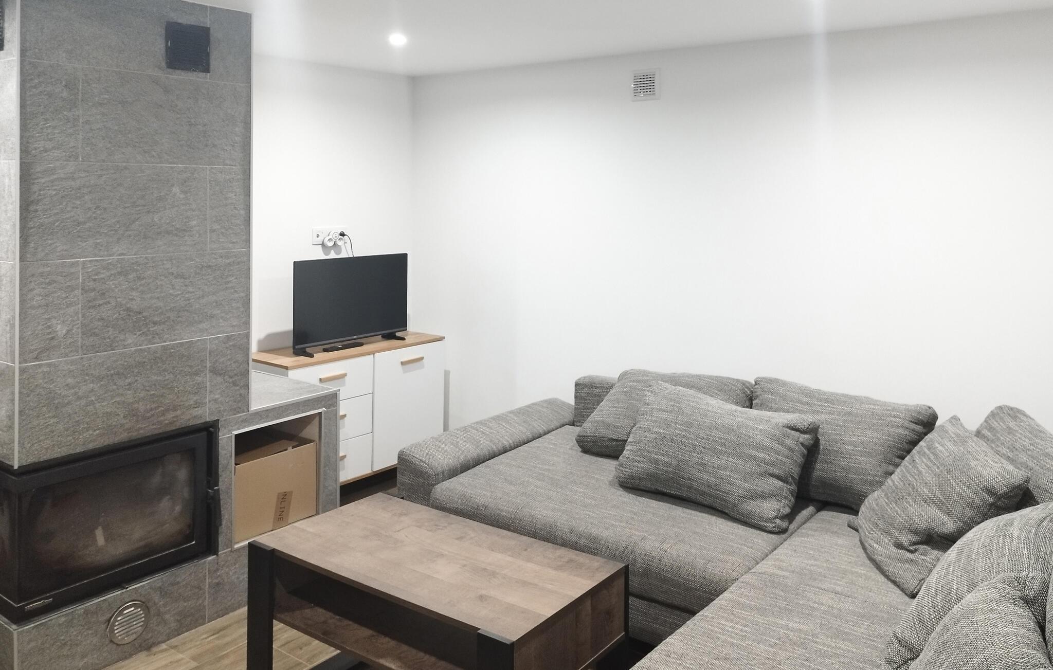 Freuen Sie sich auf Ihren Urlaub in diesem charmanten Ferienhaus, das Sie mit seiner rustikalen Gemütlichkeit empfängt. Beginnen Sie den Tag mit einem entspannten Frühstück auf der überdachten Terrasse und genießen Sie dabei die ruhige ländliche Umgebung. Die weiten Felder ringsum bieten eine idyllische Kulisse für Spaziergänge oder Radtouren in der Natur. Das Ferienhaus verfügt über ein gemütliches Wohnzimmer mit einer bequemen Couch und einem Kamin, der für gemütliche Abende sorgt.