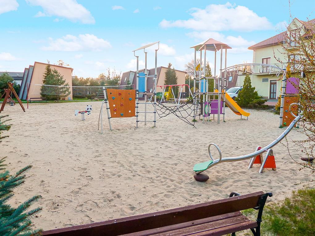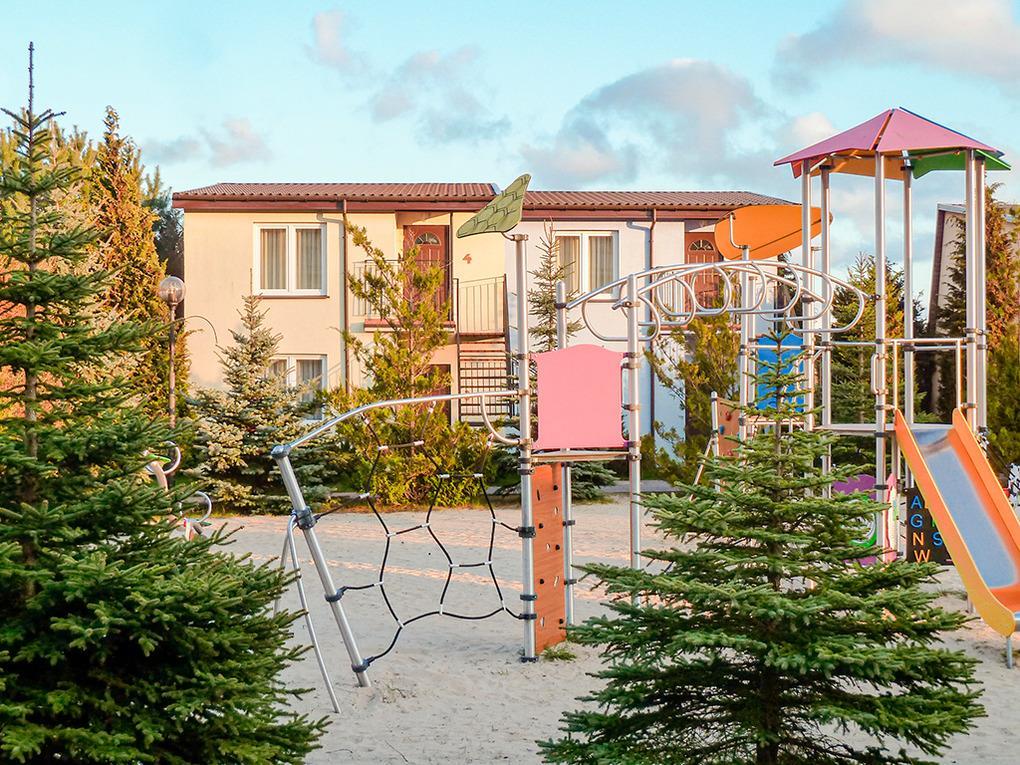 In der Anlage: Rezeption. Restaurant. Hotelhallenbad mit Whirlpool, Sauna, Dampfbad, Fitnessraum, Spielzimmer mit Kletterwald, Bällebad, Spielzeug (im Mietpreis inklusiv). Vielseitiges Angebot an Beautyanwendungen. Großer Kinderspielplatz mit Rutschen, Sandkasten, Schaukeln, Wippen, Volleyballfeld. Lagerfeuerstelle. Grillplatz zur gemeinschaftlichen Nutzung. Pkw-Stellplätze auf umzäuntem, bewachtem Parkplatz (Gebühr).