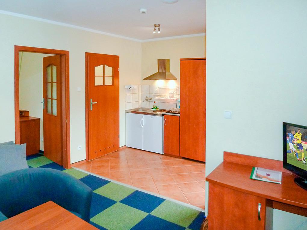 PL 65.13 Wohnung 2-4 Pers.: Rustikale 2-Zimmerwohnung mit 30 qm Wohnfläche. Wohn-/Essraum mit 2 Sofas (davon eine Ausziehcouch 2 Pers.), Sat-TV mit deutschen Programmen, kostenloses Internet (WLAN), Esstisch, Küchenzeile (2 E-Platten, Abzugshaube). Doppelzimmer. Bad/WC.