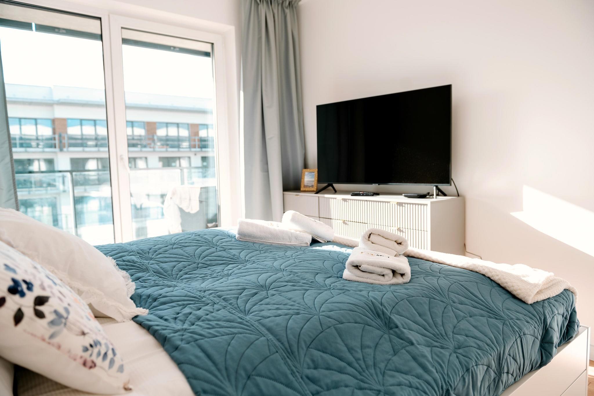 Apartmentkomplex direkt am Ufer des Flusses Dziwna. Neben der Unterkunft bietet es einen SPA-Bereich mit Hallenbad, Whirlpool und Sauna. Nur 700 m bis zum Strand, ca. 250 m bis zum Ortszentrum. Komfortable Wohnung im zweiten Stock (es gibt einen Aufzug). Es besteht aus einem Wohnzimmer, das mit einer gut ausgestatteten Küche verbunden ist, einem Schlafzimmer mit Doppelbett und einem Badezimmer mit Dusche (es gibt eine Waschmaschine). Das Wohnzimmer verfügt über ein Doppelschlafsofa, einen Tisch und einen Fernseher. Zur Wohnung gehört eine große, überdachte Terrasse. Zentralheizung. WLAN ist verfügbar. Der Komplex verfügt über ein Hallenbad (+ Planschbecken für Kinder), eine Whirlpool-Badewanne, eine Sauna und einen Fitnessraum. Für Autofahrer gibt es einen Parkplatz. Im Preis des Aufenthalts sind enthalten: Strom- und Wasserverbrauch, Schwimmbad, Sauna, Whirlpool-Badewanne, Fitnessraum, Parkplatz in der Tiefgarage, Internet. Babybett und Hochstuhl auf Anfrage erhältlich. Dziwnów verfügt über einen sauberen, sandigen und bewachten Strand, der durch eine Reihe von Dünen von der Stadt getrennt ist. Im Sommer können Kinder die Wasserrutsche und die aufblasbaren Sprungstrukturen nutzen. Aus dem Meer ragen hölzerne Wellenbrecher, auf denen oft Möwen sitzen. Die Attraktion ist die Spazierpromenade, die sich entlang des Strandes erstreckt. Die Touristenattraktion von Dziwnów ist die Zugbrücke über den Fluss Dziwna. Es blickt auf den Fluss. Seine komplexe, rot lackierte Stahlkonstruktion zieht schon von weitem die Aufmerksamkeit auf sich. Der Vorgang des Hebens der Brücke ist sehr spektakulär. Im örtlichen Fischereihafen können Sie Fisch direkt vom Kutter kaufen. Es gibt auch Verkaufsstände, an denen geräucherter Fisch und andere Fischprodukte angeboten werden.