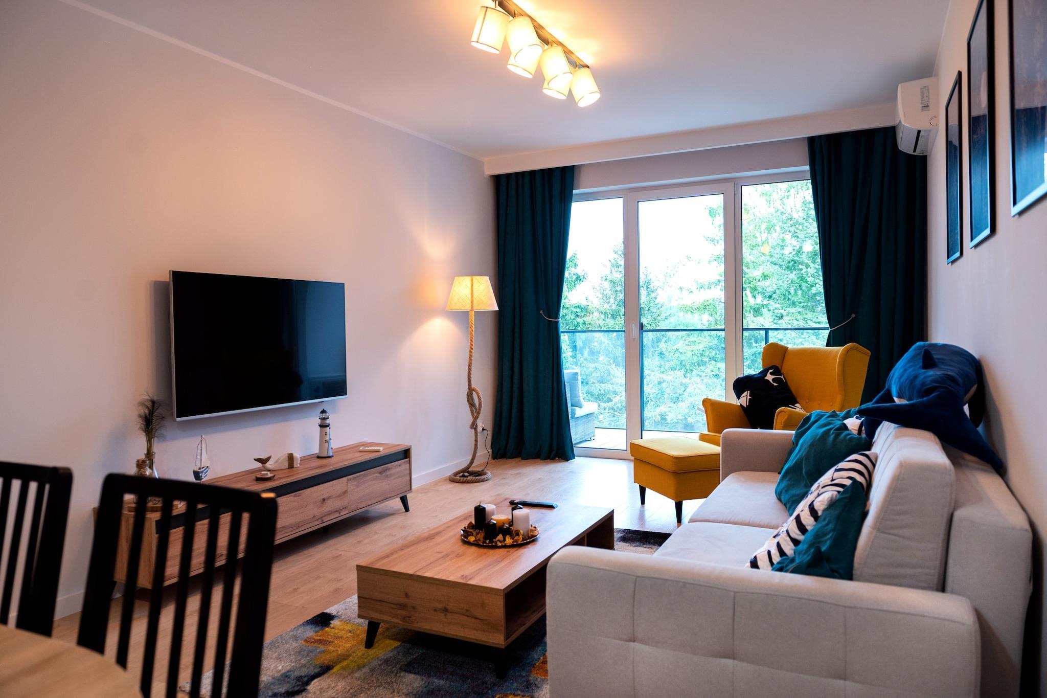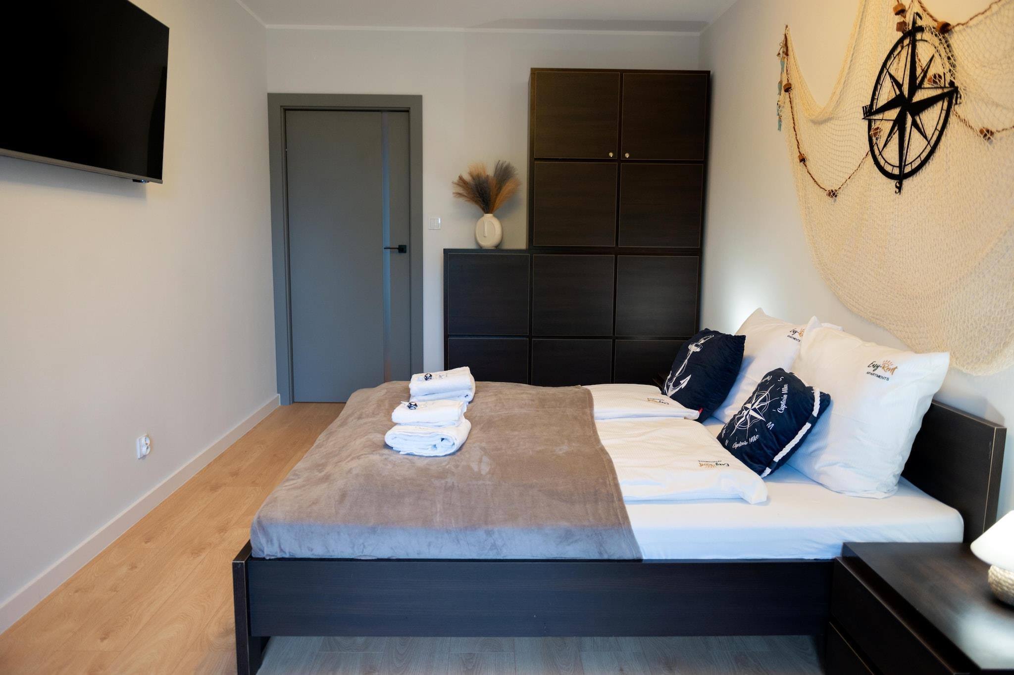 Apartmentkomplex direkt am Ufer des Flusses Dziwna. Neben der Unterkunft bietet es einen SPA-Bereich mit Hallenbad, Whirlpool und Sauna. Nur 700 m bis zum Strand, ca. 250 m bis zum Ortszentrum. Komfortable Wohnung im zweiten Stock (es gibt einen Aufzug). Es besteht aus einem Wohnzimmer, das mit einer gut ausgestatteten Küche verbunden ist, einem Schlafzimmer mit Doppelbett und einem Badezimmer mit Dusche (es gibt eine Waschmaschine). Das Wohnzimmer verfügt über ein Doppelschlafsofa, einen Tisch und einen Fernseher. Fernseher auch im Schlafzimmer. Zur Wohnung gehört ein großer, überdachter Balkon mit Gartenmöbeln (es gibt auch Liegestühle). Zentralheizung (+Klimaanlage). WLAN ist verfügbar. Der Komplex verfügt über ein Hallenbad (+ Planschbecken für Kinder), eine Whirlpool-Badewanne, eine Sauna und einen Fitnessraum. Für Autofahrer gibt es einen Parkplatz. Im Preis des Aufenthalts sind enthalten: Strom- und Wasserverbrauch, Schwimmbad, Sauna, Whirlpool-Badewanne, Fitnessraum, Parkplatz in der Tiefgarage, Internet. Babybett und Hochstuhl auf Anfrage erhältlich. Dziwnów verfügt über einen sauberen, sandigen und bewachten Strand, der durch eine Reihe von Dünen von der Stadt getrennt ist. Im Sommer können Kinder die Wasserrutsche und die aufblasbaren Sprungstrukturen nutzen. Aus dem Meer ragen hölzerne Wellenbrecher, auf denen oft Möwen sitzen. Die Attraktion ist die Spazierpromenade, die sich entlang des Strandes erstreckt. Die Touristenattraktion von Dziwnów ist die Zugbrücke über den Fluss Dziwna. Es blickt auf den Fluss. Seine komplexe, rot lackierte Stahlkonstruktion zieht schon von weitem die Aufmerksamkeit auf sich. Der Vorgang des Hebens der Brücke ist sehr spektakulär. Im örtlichen Fischereihafen können Sie Fisch direkt vom Kutter kaufen. Es gibt auch Verkaufsstände, an denen geräucherter Fisch und andere Fischprodukte angeboten werden.