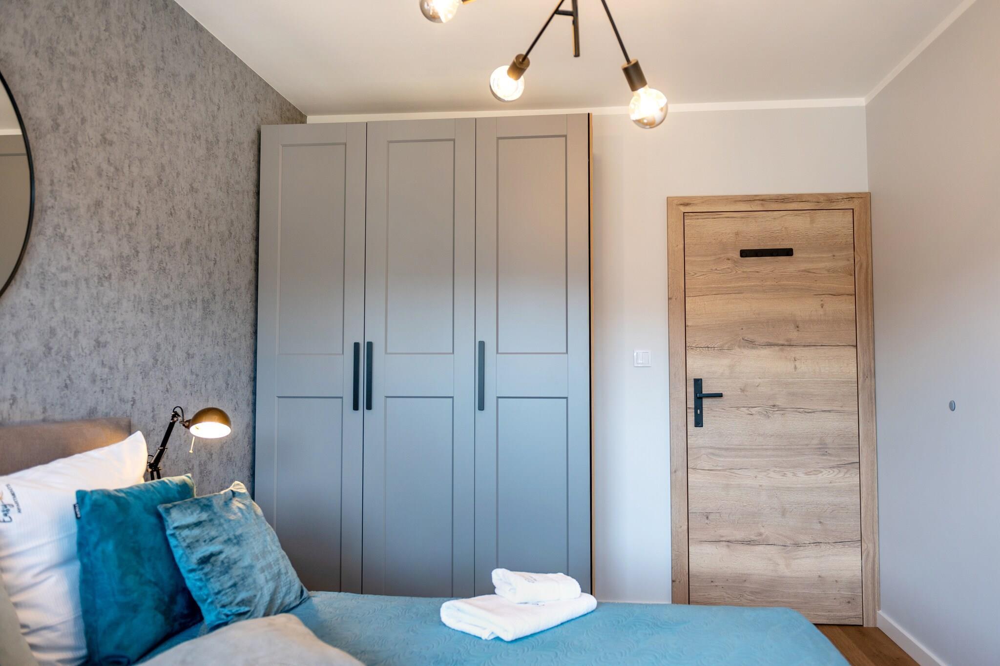 Apartmentkomplex direkt am Ufer des Flusses Dziwna. Neben der Unterkunft bietet es einen SPA-Bereich mit Hallenbad, Whirlpool und Sauna. Nur 700 m bis zum Strand, ca. 250 m bis zum Ortszentrum. Die komfortable Wohnung bietet eine komfortable Unterkunft im zweiten Stock (es gibt einen Aufzug). Die Wohnung besteht aus einem Wohnzimmer, das mit einer gut ausgestatteten Küche verbunden ist, einem Schlafzimmer mit Doppelbett und einem Badezimmer mit Dusche (es gibt eine Waschmaschine). Das Wohnzimmer verfügt über ein Doppelschlafsofa, einen Tisch und einen Fernseher. Zur Wohnung gehört eine große, überdachte Terrasse mit Gartenmöbeln. Zentralheizung. WLAN verfügbar. Der Komplex verfügt über ein Hallenbad (+ Planschbecken für Kinder), eine Whirlpool-Badewanne, eine Sauna und einen Fitnessraum. Für Autofahrer gibt es einen Parkplatz. Im Preis des Aufenthalts sind enthalten: Strom- und Wasserverbrauch, Schwimmbad, Sauna, Whirlpool-Badewanne, Fitnessraum, Parkplatz in der Tiefgarage, Internet. Babybett und Hochstuhl auf Anfrage erhältlich. Dziwnów verfügt über einen sauberen, sandigen und bewachten Strand, der durch eine Reihe von Dünen von der Stadt getrennt ist. Im Sommer können Kinder die Wasserrutsche und die aufblasbaren Sprungstrukturen nutzen. Aus dem Meer ragen hölzerne Wellenbrecher, auf denen oft Möwen sitzen. Die Attraktion ist die Spazierpromenade, die sich entlang des Strandes erstreckt. Die Touristenattraktion von Dziwnów ist die Zugbrücke über den Fluss Dziwna. Es blickt auf den Fluss. Seine komplexe, rot lackierte Stahlkonstruktion zieht schon von weitem die Aufmerksamkeit auf sich. Der Vorgang des Hebens der Brücke ist sehr spektakulär. Im örtlichen Fischereihafen können Sie Fisch direkt vom Kutter kaufen. Es gibt auch Verkaufsstände, an denen geräucherter Fisch und andere Fischprodukte angeboten werden.