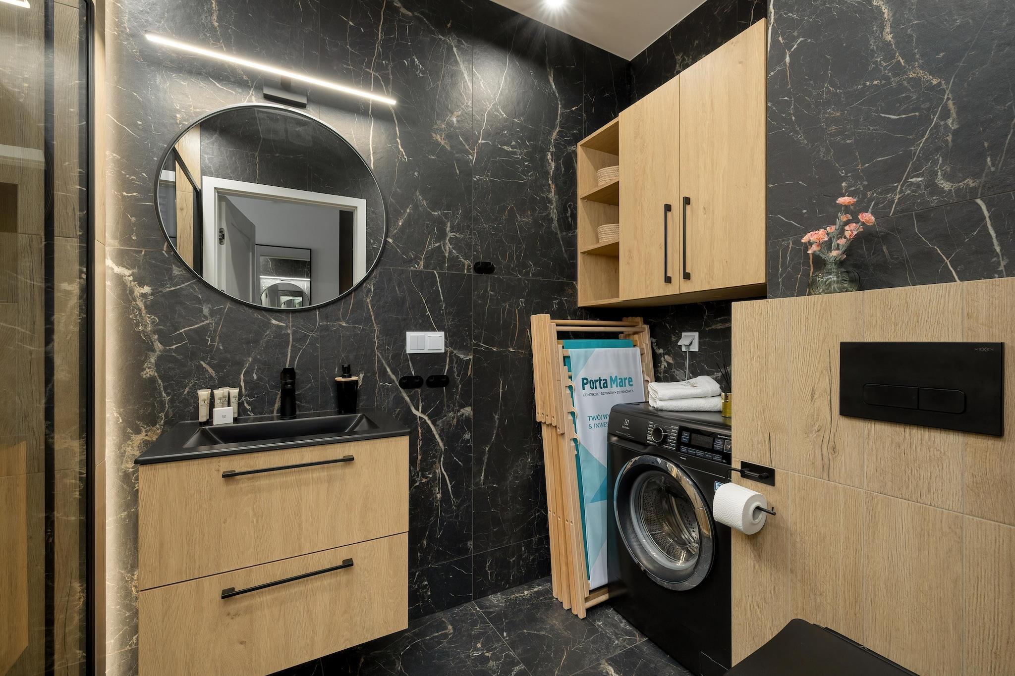 Apartmentkomplex direkt am Ufer des Flusses Dziwna. Neben der Übernachtung bietet es einen SPA-Bereich mit Hallenbad, Whirlpool und Sauna. Zum Strand sind es nur 700 m. Zum Ortszentrum sind es ca. 250 m. Komfortable Wohnung im ersten Stock (es gibt einen Aufzug). Vom Balkon aus können die Gäste einen wunderschönen Panoramablick auf den Fluss genießen. Die Wohnung besteht aus einem Wohnzimmer, das mit einer gut ausgestatteten Küche verbunden ist, einem Schlafzimmer mit Doppelbett und einem Badezimmer mit Dusche. Im Wohnzimmer gibt es ein Doppelschlafsofa, einen Tisch und einen Fernseher. Es gibt eine Waschmaschine. Zur Wohnung gehört ein großer, überdachter Balkon mit Gartenmöbeln. Zentralheizung. WLAN ist verfügbar. Die Anlage bietet den Gästen ein Hallenbad (+ Kinderbecken), Whirlpool, Sauna und Fitnessraum. Für die Anreise mit dem Auto ist ein Parkplatz vorhanden. Im Preis Ihres Aufenthaltes sind enthalten: Strom- und Wasserverbrauch, Schwimmbad, Sauna, Whirlpool, Fitnessraum, Parkplatz in der Tiefgarage, Internet. Babybett und Hochstuhl auf Anfrage verfügbar. Dziwnów hat einen sauberen, sandigen und bewachten Strand, der durch einen Dünenstreifen von der Stadt getrennt ist. Im Sommer können sich Kinder auf der Wasserrutsche und den aufblasbaren Sprunggeräten vergnügen. Aus dem Meer ragen hölzerne Wellenbrecher, auf denen oft Möwen sitzen. Eine Attraktion ist die Spazierpromenade, die sich entlang des Strandes erstreckt. Eine Touristenattraktion von Dziwnów ist die Zugbrücke über den Fluss Dziwna. Es bietet Ausblick auf den Fluss. Seine filigrane, rot lackierte Stahlkonstruktion fällt schon von Weitem auf. Der Vorgang des Anhebens der Brücke ist sehr spektakulär. Im örtlichen Fischereihafen können Sie Fisch direkt vom Kutter kaufen. Darüber hinaus gibt es Verkaufsstände mit Räucherfisch und anderen Fischprodukten.