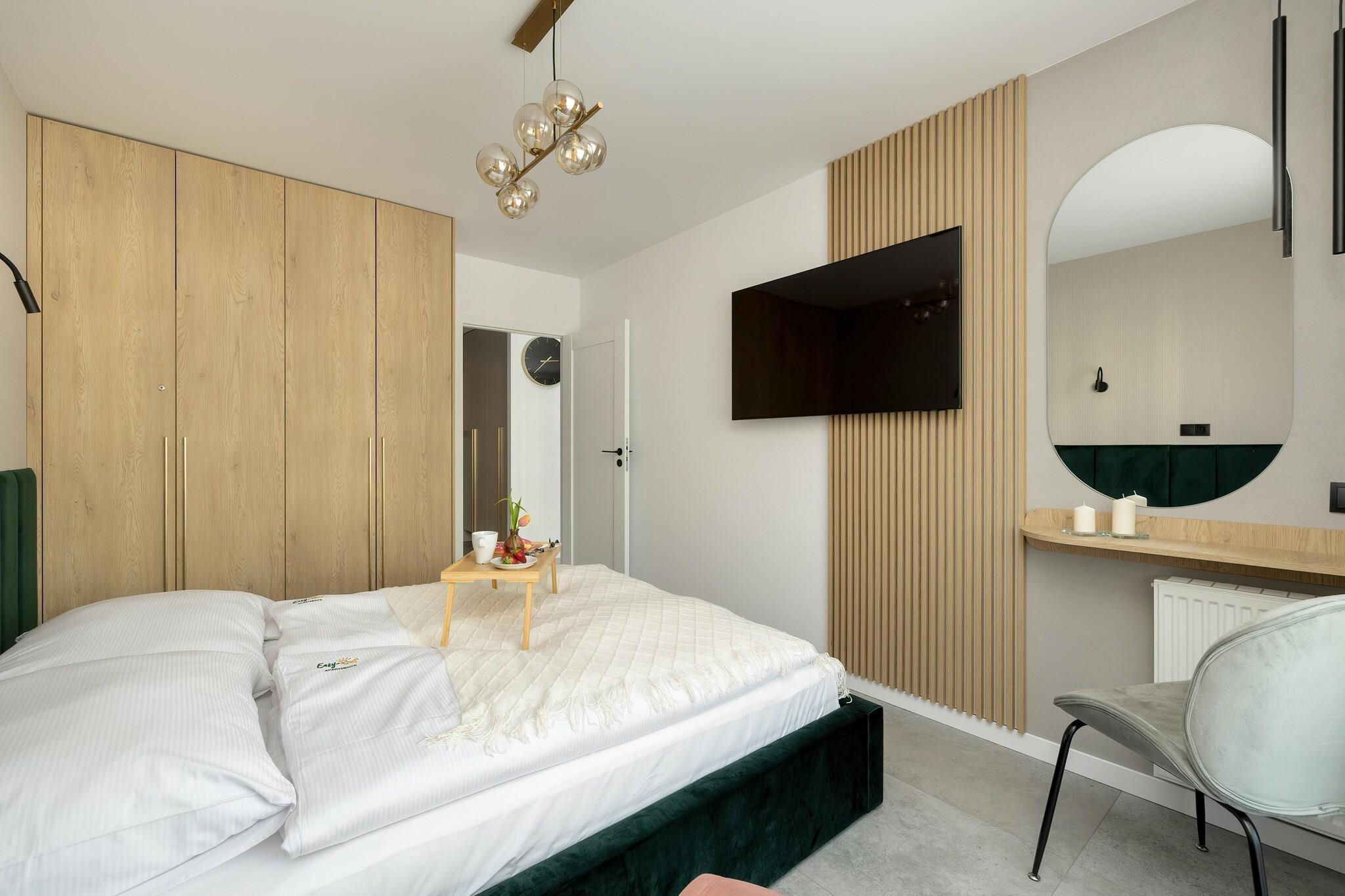 Ein Apartmentkomplex direkt am Ufer des Flusses Dziwna. Zusätzlich zu den Appartements bietet es einen SPA-Bereich mit Hallenbad, Whirlpool und Sauna. Zum Strand sind es ca. 700 m. Das Ortszentrum ist ca. 250 m entfernt. Die gemütliche Wohnung liegt im 1. Obergeschoss. Es besteht aus einem Wohnzimmer, das mit einer perfekt ausgestatteten Küche verbunden ist, einem Schlafzimmer mit einem breiten Doppelbett (+ einem Klappbett für 1 Person) und einem Badezimmer mit Dusche (es gibt eine Waschmaschine). Im Wohnzimmer gibt es ein Doppelschlafsofa, einen Tisch und einen Fernseher. Zur Wohnung gehört ein großer, überdachter Balkon. Es gibt eine Klimaanlage mit Heiz- und Kühlfunktion. WLAN ist verfügbar. Die Anlage verfügt über ein schönes Hallenbad (+ Kinderbecken), Whirlpool, Sauna und Fitnessraum. Für die Anreise mit dem Auto ist ein Parkplatz vorhanden. Im Aufenthaltspreis inbegriffen: Strom- und Wasserverbrauch, Schwimmbad, Sauna, Whirlpool, Fitnessraum, Klimaanlage, Parkplatz, Internet. Babybett und Hochstuhl auf Anfrage verfügbar. Dziwnów hat einen sauberen, sandigen und bewachten Strand, der durch einen Dünenstreifen von der Stadt getrennt ist. Im Sommer können sich Kinder auf der Wasserrutsche und den aufblasbaren Sprunggeräten vergnügen. Aus dem Meer ragen hölzerne Wellenbrecher, auf denen oft Möwen sitzen. Im Sommer können Sie auch eine Fahrt auf einer Banane oder einem von einem Motorboot gezogenen Rad unternehmen. Eine weitere tolle Attraktion des Strandes ist die Promenade, die sich entlang der Dünen des breiten Sandstrandes erstreckt. Dies ist ein idealer Ort für Wanderer. Während Sie entspannen, können Sie die wunderschöne Aussicht und den Sonnenuntergang genießen. In der Zwischenzeit können Sie auf den Bänken Platz nehmen, die entlang der Promenade aufgestellt wurden. Im örtlichen Fischereihafen können Sie Fisch direkt vom Kutter kaufen. Darüber hinaus gibt es Verkaufsstände mit Räucherfisch und anderen Fischprodukten.