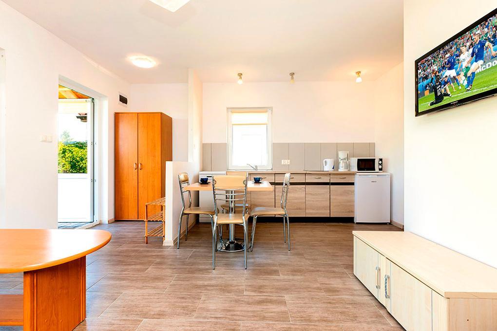Ort: Dziwnowek, Ortsteil Wrzosowo. Ruhige Lage in einer neuen Wohnsiedlung. Angelstelle am Wrzosowski See 650 m. Lebensmittelladen 450 m. Pferdegestüt 400 m. Bade-/ Wassersportstrand am Wrzosowski See 1,4 km. Ortsmitte Dziwnowek mit Geschäften, Restaurants 1,6 km. Windsurfing-, Kitesurfing-Schule, Bootsverleih (Kajak, Tretboot) 2 km. Ostseestrand Dziwnowek 2 km. Kamien Pomorski 7 km.