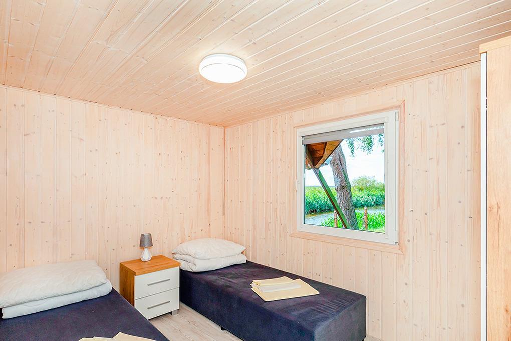 PL 43.15 Ferienhaus 2-4 Pers.: 3-Zimmerhaus mit 37 qm Wohnfläche. Wohn-/Essraum mit Sofa, Flachbild SAT-TV mit deutschen Programmen, Couchtisch, Küchenzeile (2 E-Platten). 2 Doppelzimmer. Bad/ WC. Teilweise überdachte Terrasse mit Sitzmöbeln, Wasserblick.