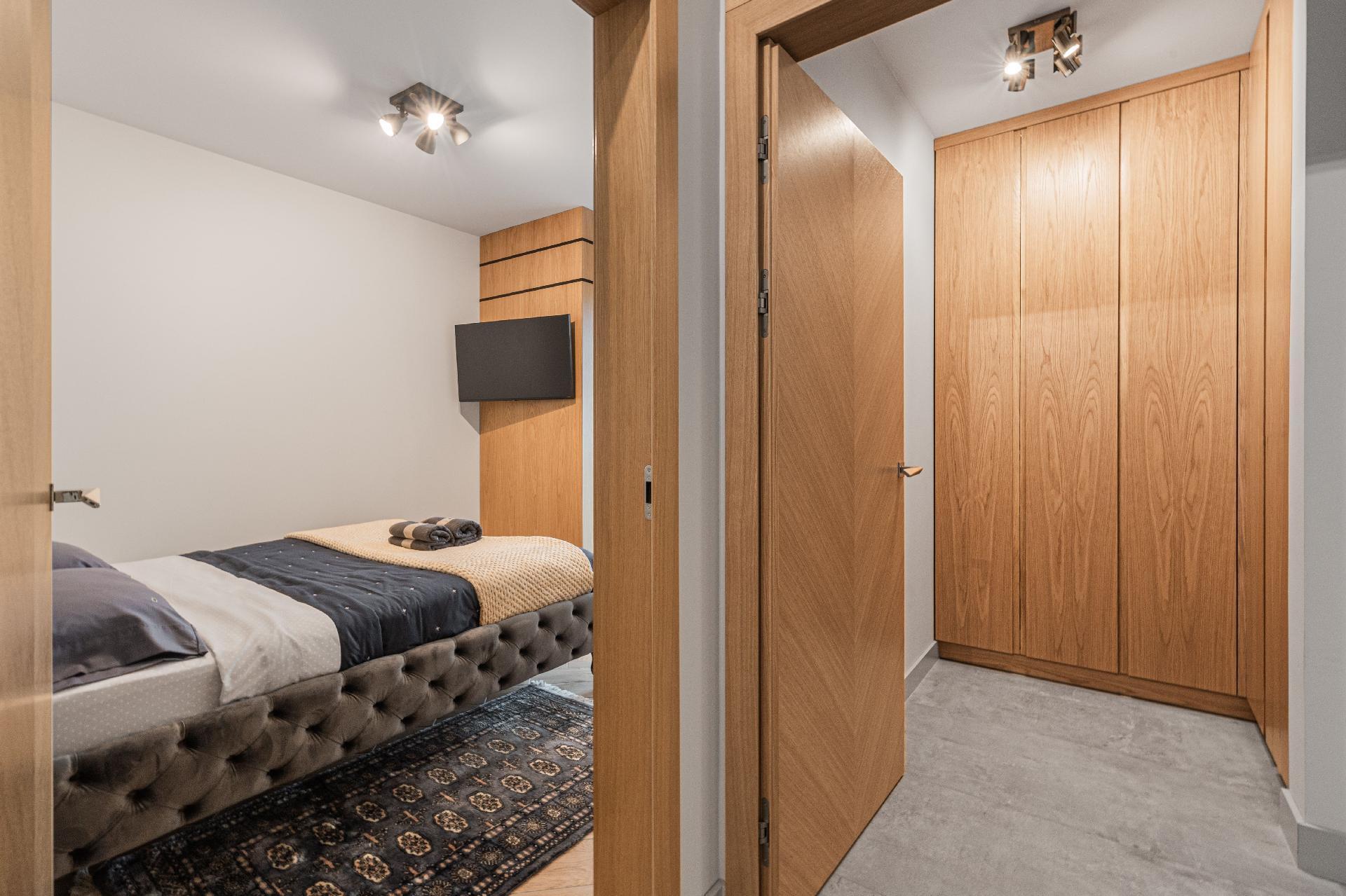 Ein Doppelschlafzimmer mit "King Bed" 180x200; großer Ankleideraum, zweites Schlafzimmer mit "Queen Bed" 160x200; über der Standardhöhe der Wohnung.