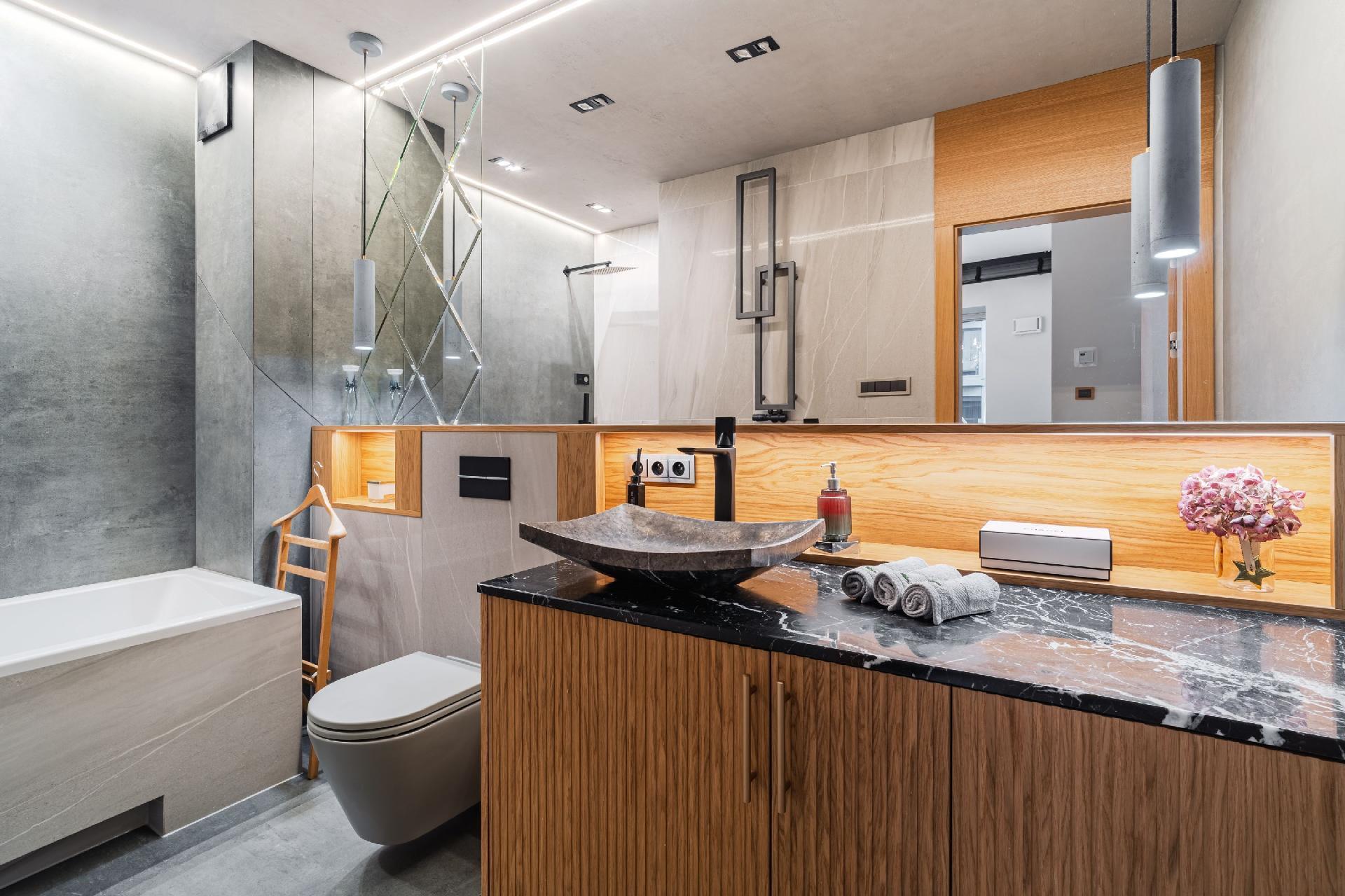 Designer-Badezimmer mit Tres-Duscharmaturen mit elektronischem Touchpanel.