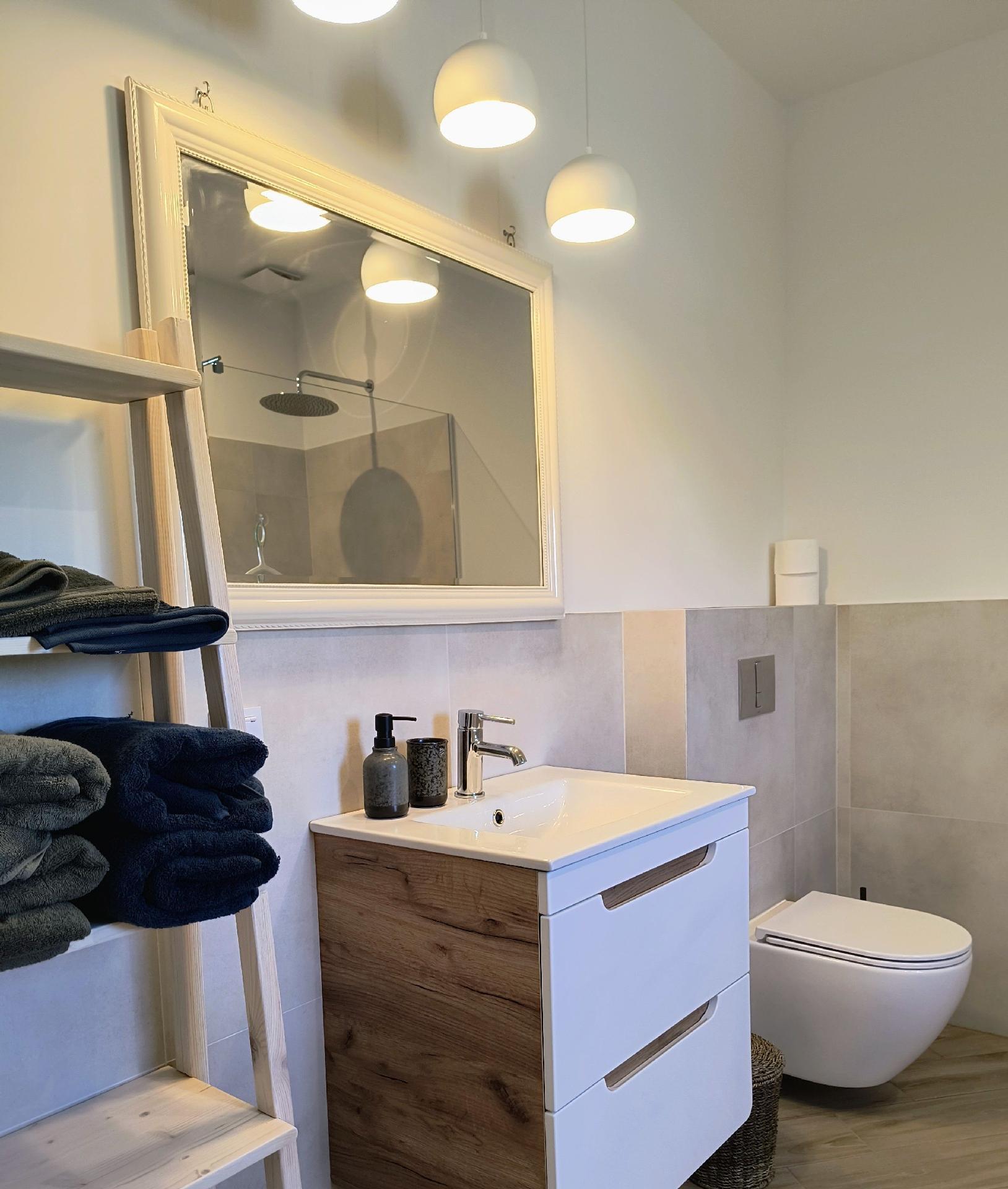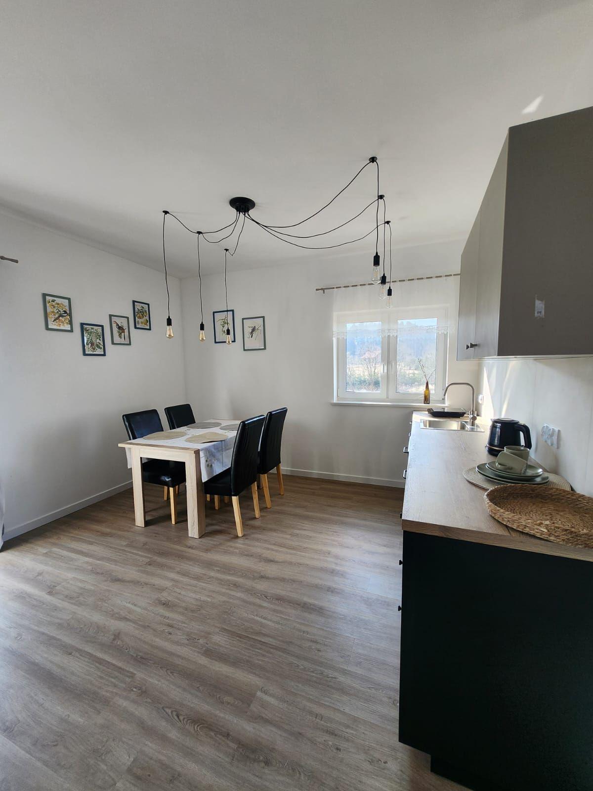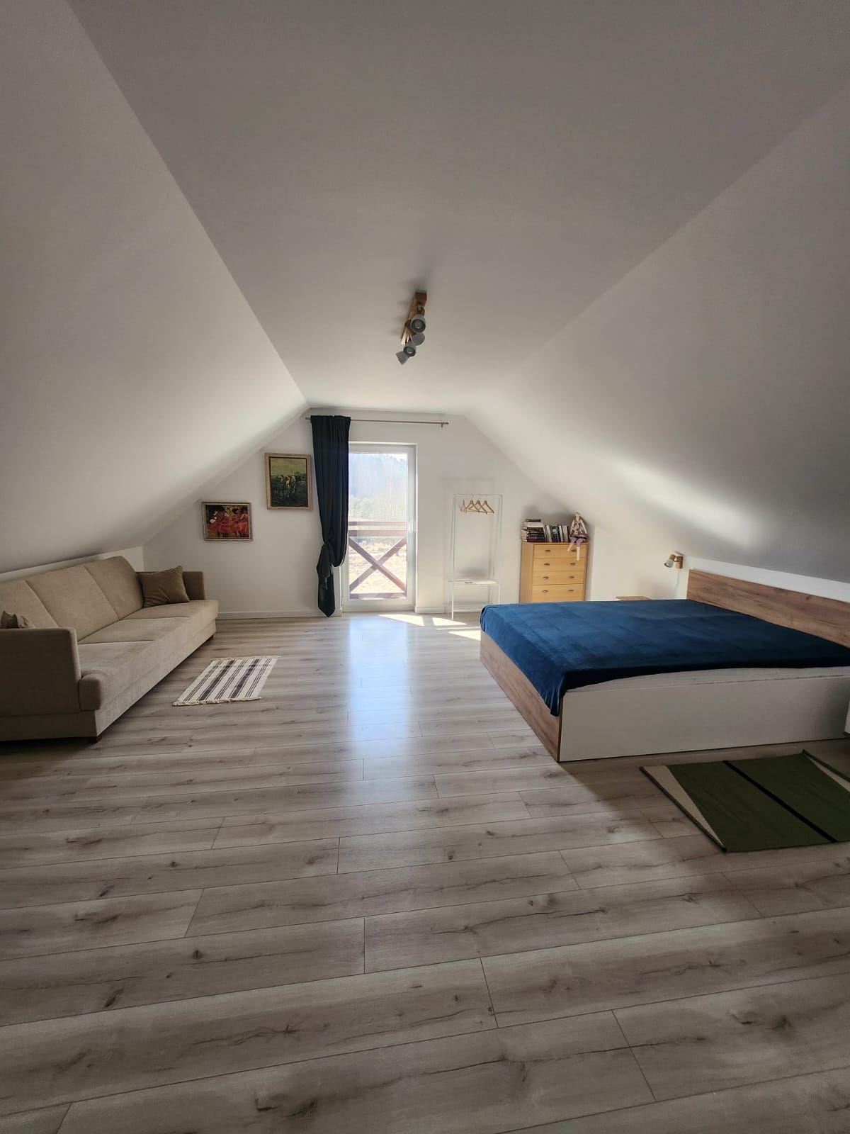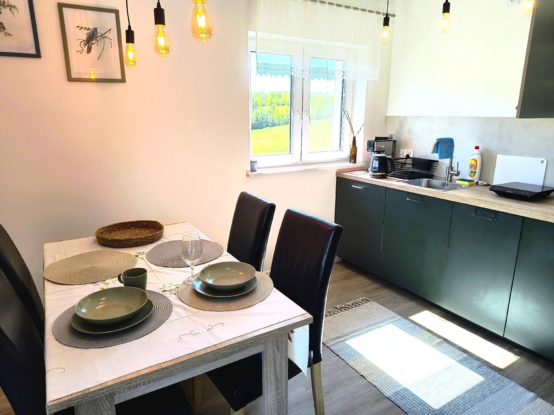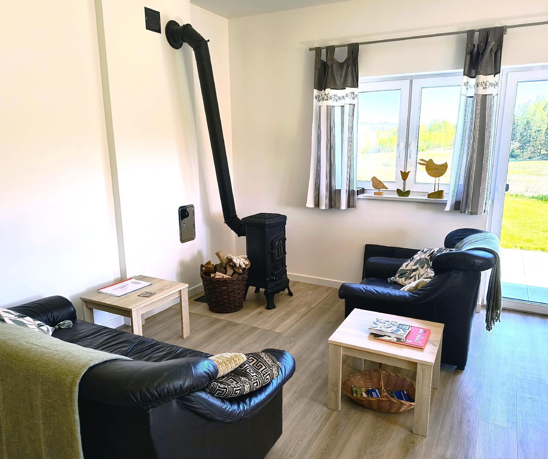 Ptasi Zakatek ist ein ruhiger Ort an der Grenze zwischen Ermland und Masuren. Hier kann sich jeder entspannen. Die Anlage befindet sich auf einem 7 ha großen Grundstück am Rande des Dorfes Tomaryny. Raum, Ruhe und Naturnähe sind unsere Hauptvorzüge. Die 75m2 große Ferienwohnung nimmt die Hälfte des Segments ein. Von den Fenstern und der Terrasse aus hat man Blick auf den Wald und die Aue. Von morgens bis abends können Sie die Vögel (Kraniche, Störche, Brombeeren, Schwalben, manchmal Adler) und die Tiere, die auf dem Grundstück vorkommen (Rehe, Hirsche, Füchse, Hasen) beobachten. Das Schlafzimmer, ausgestattet mit einem Doppelbett und einem Schlafsofa, befindet sich im ersten Stock (Zugang über eine Treppe). In der Wohnung gibt es Bücher und Brettspiele, und es stehen Fahrräder zur Verfügung.