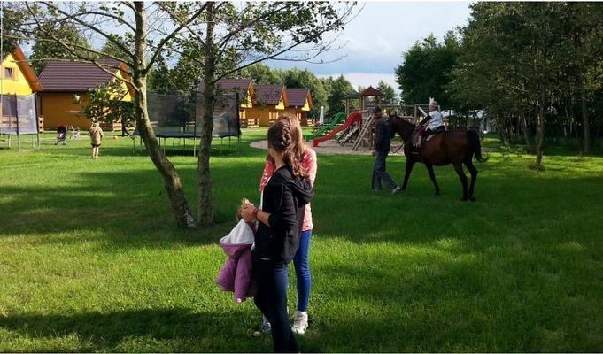 Die zweistöckigen Blockhäuser, die ganz aus Holz gebaut sind, verfügen über ein großes Wohnzimmer mit Küche und Bad sowie eine Terrasse im Erdgeschoss und zwei Schlafzimmer im Obergeschoss. Bei uns finden Sie ideale Bedingungen für einen aktiven Urlaub und eine angenehme Abwechslung vom Alltag. Auf einer Gesamtfläche von mehr als 2,6 Hektar bieten wir Ihnen zahlreiche Sportplätze für Fußball, Beachvolleyball, Basketball, Badminton usw., einen 40 Hektar großen Teich, auf dem Sie Boote oder Tretboote segeln können, und für diejenigen, die Ruhe und Erholung bevorzugen, einen Erlenhain mit Hängematten zum Faulenzen. Das gesamte Gelände ist eingezäunt, so dass unsere kleinen Gäste sicher auf dem großen Spielplatz mit Trampolinen und anderen Attraktionen spielen können. Die ruhige und saubere Umgebung und das besondere Mikroklima des Kiefernwaldes laden zu Spaziergängen und Radtouren ein, und der 6 km entfernte Strand von Dabki wird Ihr Urlaubserlebnis an der Ostsee abrunden. Stille, Ruhe...einfach freie Zeit. Willkommen in Gleznówek. Unsere Blockhütten sind ganz aus Holz gebaut, was für Entspannung und eine besondere Atmosphäre sorgt. Wir haben 7 Blockhütten. Jede Hütte kann 4-6 Personen beherbergen und ist wie folgt ausgestattet: Großes Wohnzimmer mit Sitzecke 32-Zoll-Satelliten-TV Voll ausgestattete Küche mit Esstisch Kühlschrank Mikrowelle Gasherd Geschirr Badezimmer (Dusche, WC, Waschbecken mit Unterschrank) Terrasse mit Sitzgelegenheit und Grill Zwei separate Schlafzimmer im Dachgeschoss Schlafzimmer mit Doppelbett und geräumiger Kommode Schlafzimmer mit zwei Einzelbetten und großem Kleiderschrank
