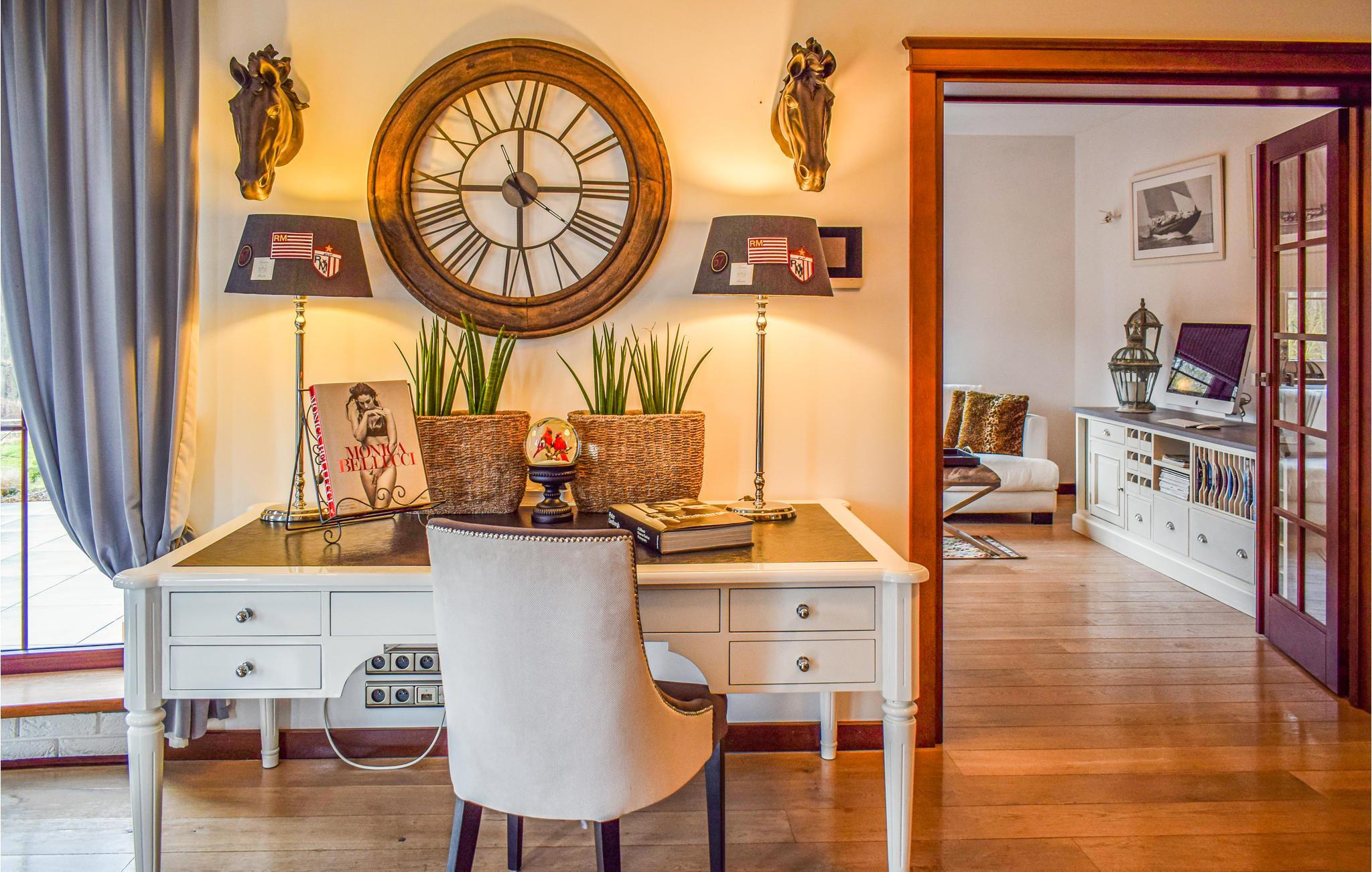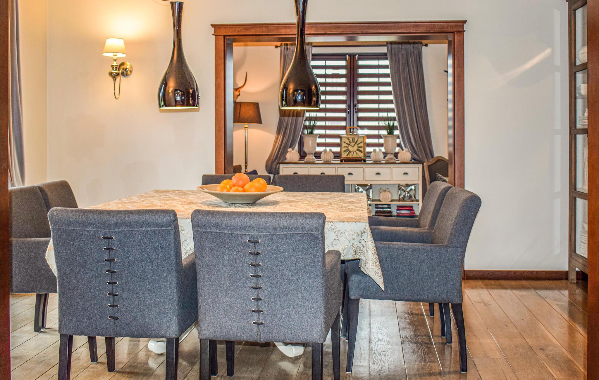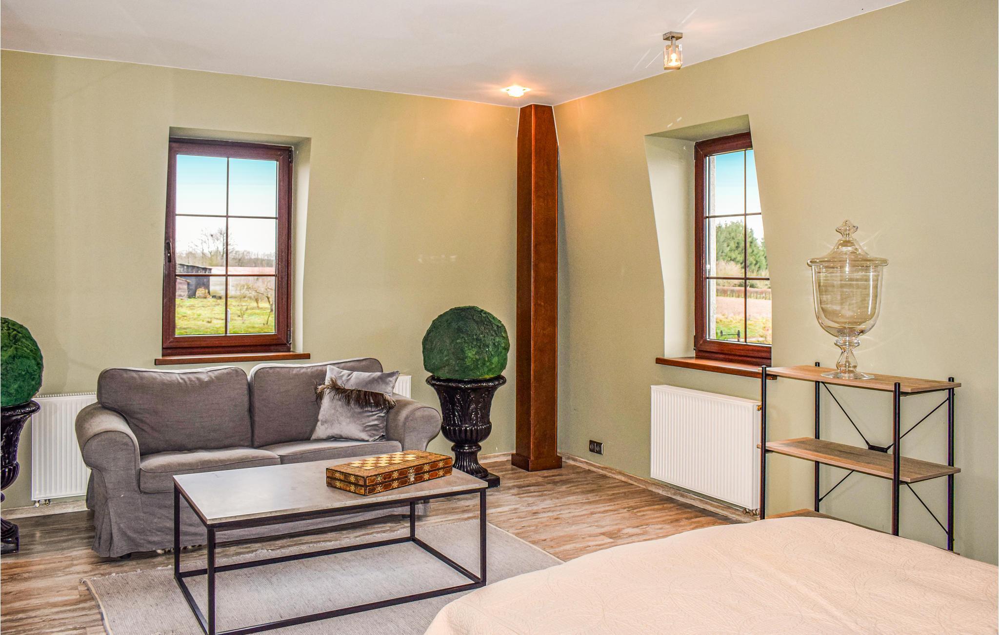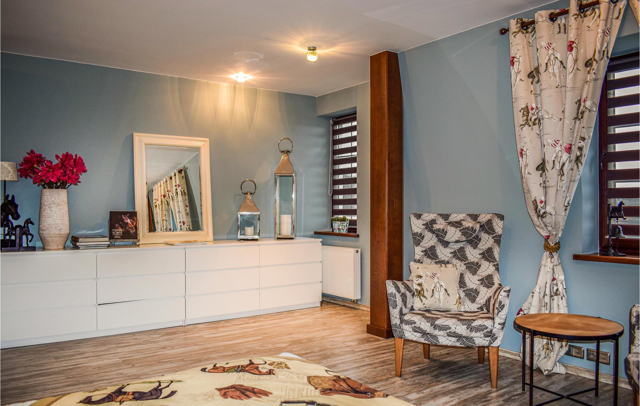 Dieses luxuriöse Ferienhaus liegt im Ort Golczewo. Das Haus liegt direkt am Wald in der Nähe von Okonim, dem Szczucze See und dem Niemica Fluss. Es ist geschmackvoll, modern und praktisch möbliert. Die schöne Lage in ruhiger Gegend bildet den idealen Rahmen für einen erholsamen Urlaub. In diesem schönen, komfortablen und modernen Ferienhaus können Sie von der Hektik des Alltags zurückziehen und sich wirklich gut entspannen. Im Wohnraum befindet sich ein Kamin, vor dem Sie viele gemütliche Momente verbringen können. Das Haus ist ein guter Ausgangpunkt für Ausflüge in die interessante Umgebung. Die Stadt Golczewo ist malerisch gelegen und vom 33 m hohen historischen Turm können Sie die Umgebung bewundern. Viele Wanderwegn laden zu langen Spaziergängen ein. Besuchen Sie auch die nahe gelegene Stadt Kamien Pomorski (18 km).