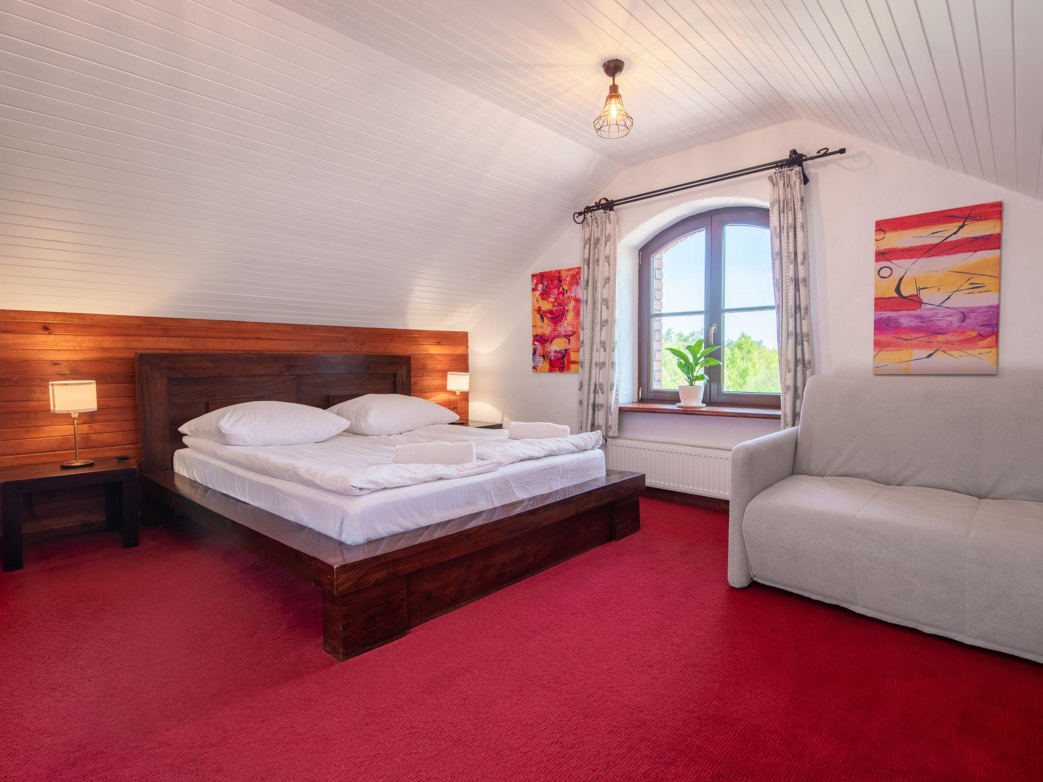 Ulnowo 4 km von Grunwald: Grosses, kinderfreundliches Einfamilienhaus "Osada Ulnowo", Baujahr 1930, renoviert im Jahre 2010, umgeben von Bäumen und Wiesen. Ausserhalb des Ortes, 4 km vom Zentrum, ruhige, sonnige, erhöhte Lage, 300 m vom See, im Grünen. Zur Mitbenutzung: Grundstück 20'000 m2 (eingezäunt), Garten 2 ha Rasen, Wiese. Zur Alleinbenutzung: Teich. Sprudelbad, Tennis, Terrasse (60 m2), Gartenmöbel, Grill, Feuerstelle, Grillhaus, Kinderspielplatz (Rutschbahn, Schaukel, Sandkasten). Im Hause: Internetzugang, Sauna, Fitnessraum, Zentralheizung, Wäscherei, Trockenraum. Zur Verfügung: Fahrräder (5), Kinderfahrräder (3), Boot. Frühstück und Halbpension auf Anfrage (extra). Einkaufsservice vor Anreise möglich. Zufahrt bis zum Haus. Parkplatz beim Haus auf dem Grundstück. Einkaufsgeschäft 4 km, Lebensmittelgeschäft 4 km, Supermarkt 18 km, Restaurant 12 km, Bushaltestelle 4 km, Bahnstation 18 km, Sandstrand 6 km, Kieselstrand 6 km, Grasstrand 300 m, Hallenbad 35 km, Badebucht 6 km, Naturbadeteich 20 m. Reitstall 7 km, Kinderspielplatz 15 m. Bitte beachten: Fahrzeug empfohlen. Geeignet für Familien. Angeln (mit Bewilligung). Der Besitzer wohnt auf dem gleichen Grundstück. WICHTIG: Kaution 1'000 PLN.