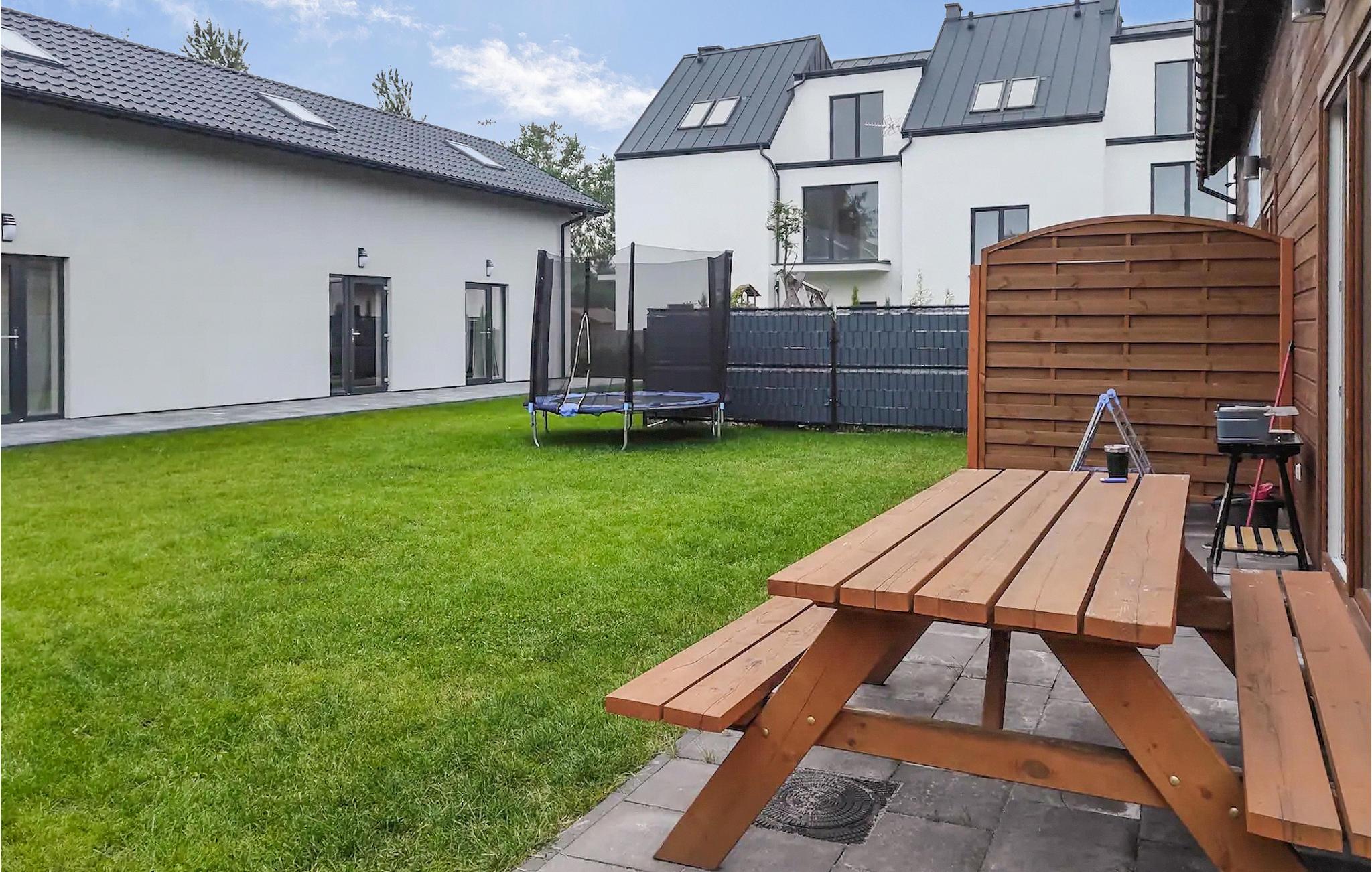 An der polnischen Ostseeküste von Grzybowo heißt Sie dieses schöne und moderne Reihenhaus willkommen. Auf zwei schönen Etagen können Sie sich entspannen, sich ausruhen und die Familienzeit gemeinsam genießen. Freuen Sie sich auch auf Ihre Mahlzeiten auf der Terrasse und schauen Sie anschließend Ihren Kindern beim Spielen im Gemeinschaftsgarten, mit Rutsche, Schaukeln, Sandkasten und Trampolin zu. Weitere Nachbarhäuser machen auch einen Urlaub als Großfamilie möglich.