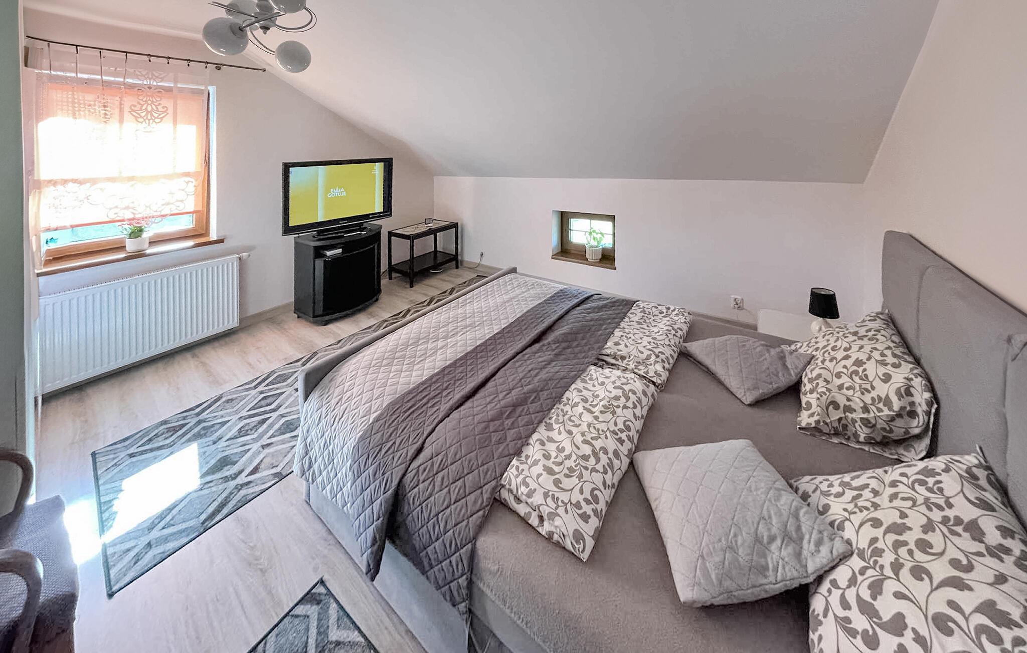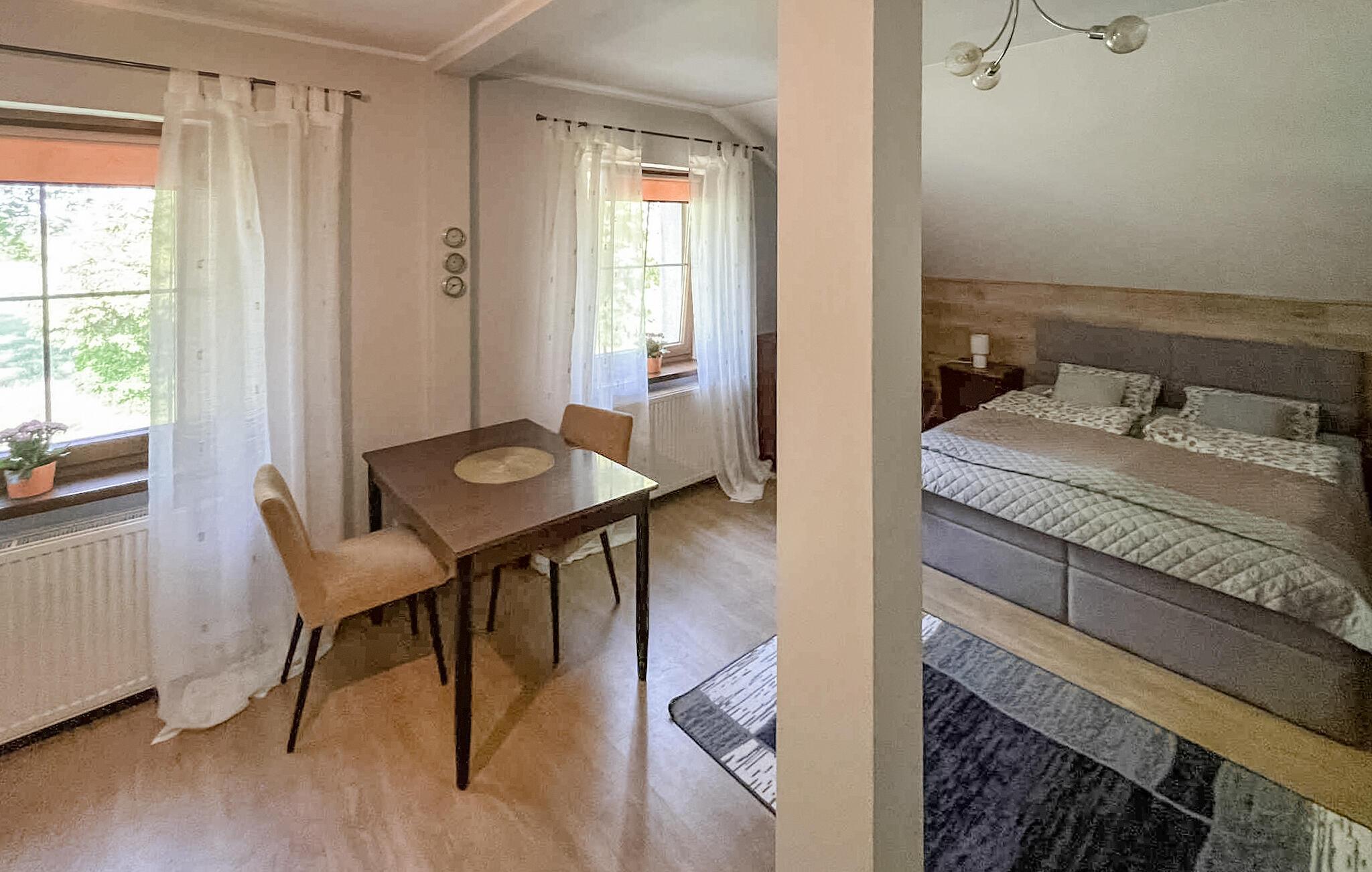Nahe dem Haus lädt der See Letowo mit Strand, Steg und tollen Angelmöglichkeiten zu ausgiebigen Spaziergängen, erfrischenden Badeausflügen oder entspannten Stunden am Wasser ein. Besuchen Sie nahegelegene Städte wie Szczecinek oder Koszalin mit historischen Bauwerken und charmanten Cafés.