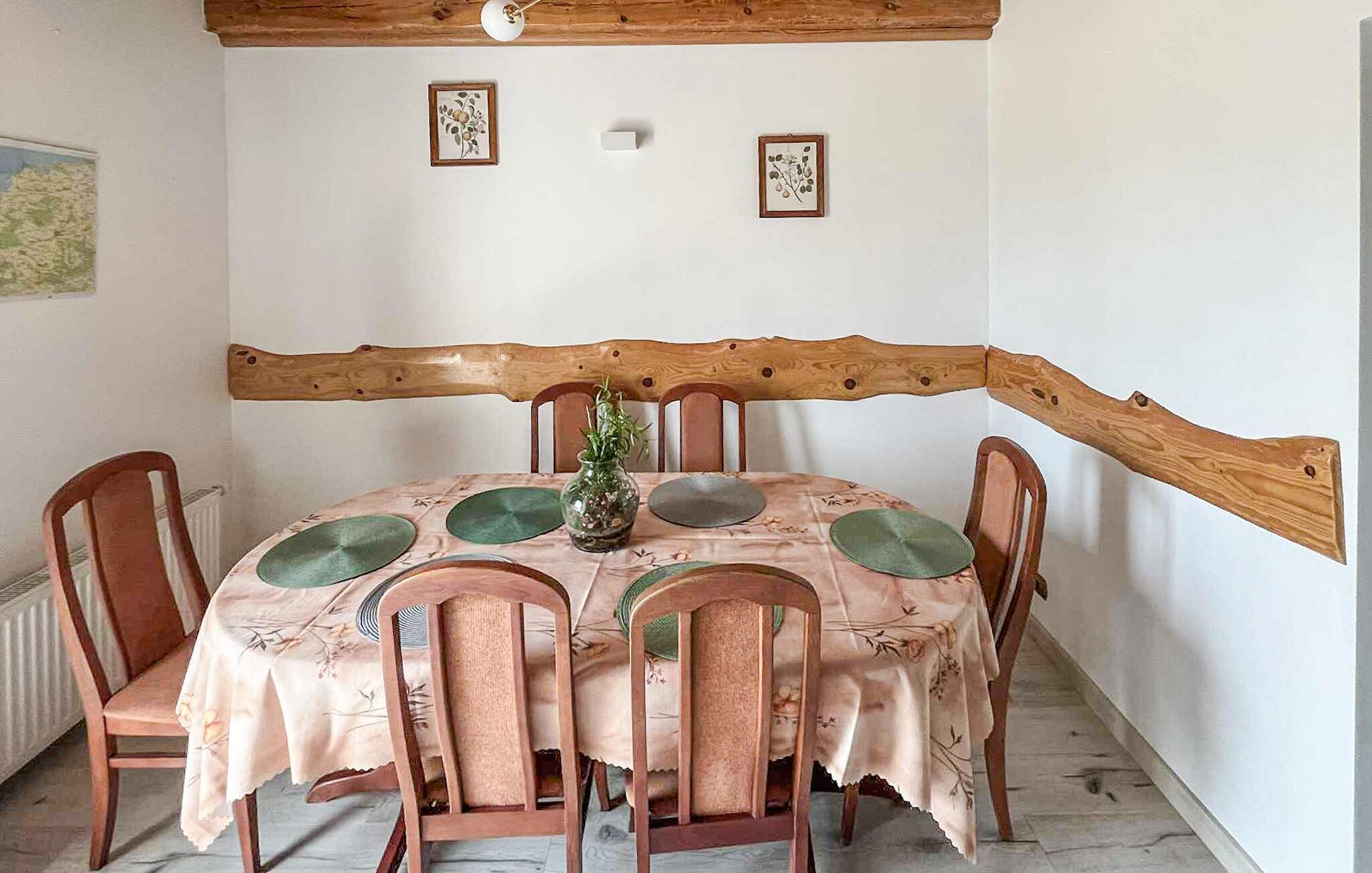 Das komfortable und geräumige Haus empfängt Sie in guter Lage für zahlreiche Aktivitäten zwischen Feldern und Wald und ist der ideale Ort für eine erholsame Auszeit mit Erkundungen der Umgebung. Machen Sie es sich anschließend auf den Sesseln und Sofas bequem, lesen Sie in Ruhe oder sehen Sie einen Film. Schmieden Sie beim gemeinsamen Essen Pläne für kommende Ausflüge und genießen Sie die gemeinsame Zeit.