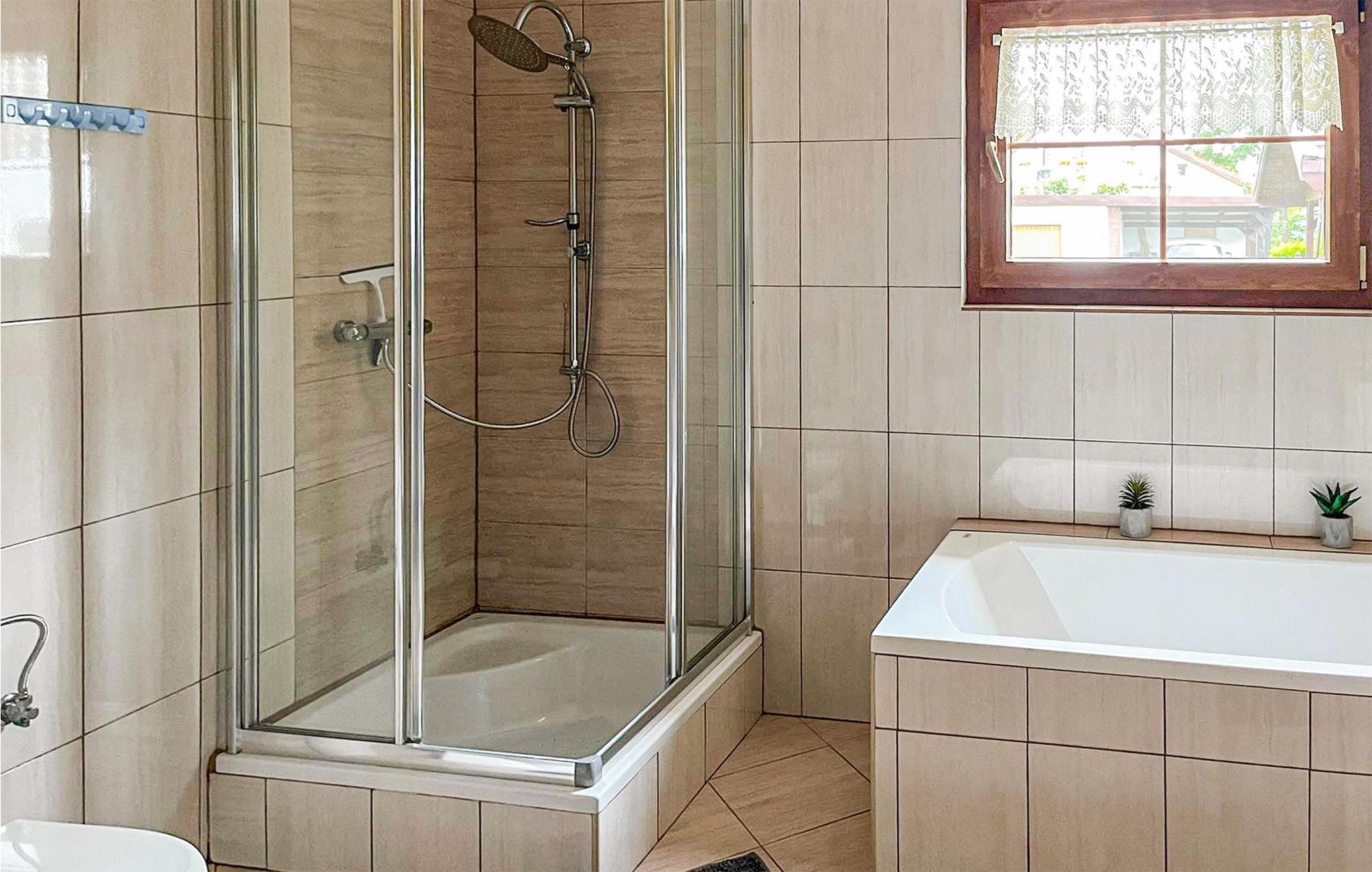 Badezimmer (nr. 1) - WC. Warmes und kaltes Wasser. Dusche und Badewanne