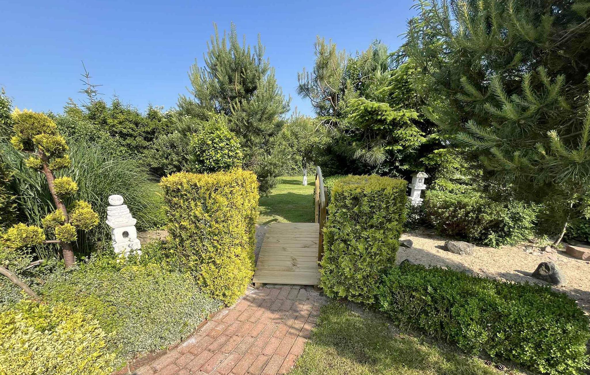 Der Garten des geschlossenen Anwesens lädt dazu ein, in vollen Zügen die Sonne zu genießen. Sehen Sie Ihren Kindern beim Fußballspielen und Trampolinspringen zu, ernten Sie Obst und Gemüse und lassen Sie hier einen erlebnisreichen Tag mit Getränken auf der Terrasse zu Ende gehen.
