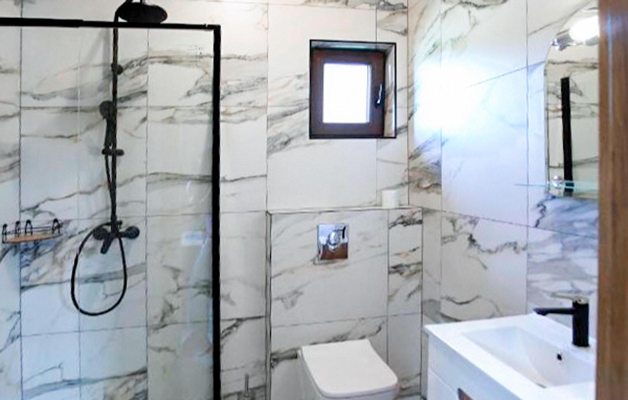 Badezimmer 4m2 (nr. 1) - WC. Warmes und kaltes Wasser. Dusche