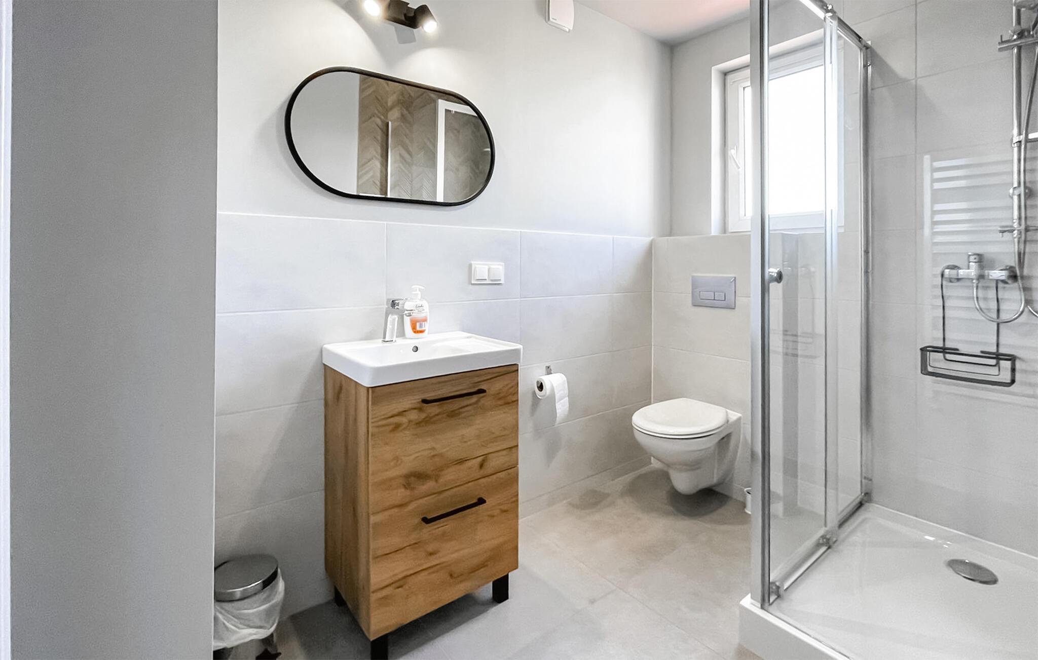 Badezimmer 4m2 (nr. 1) - WC. Warmes und kaltes Wasser. Dusche