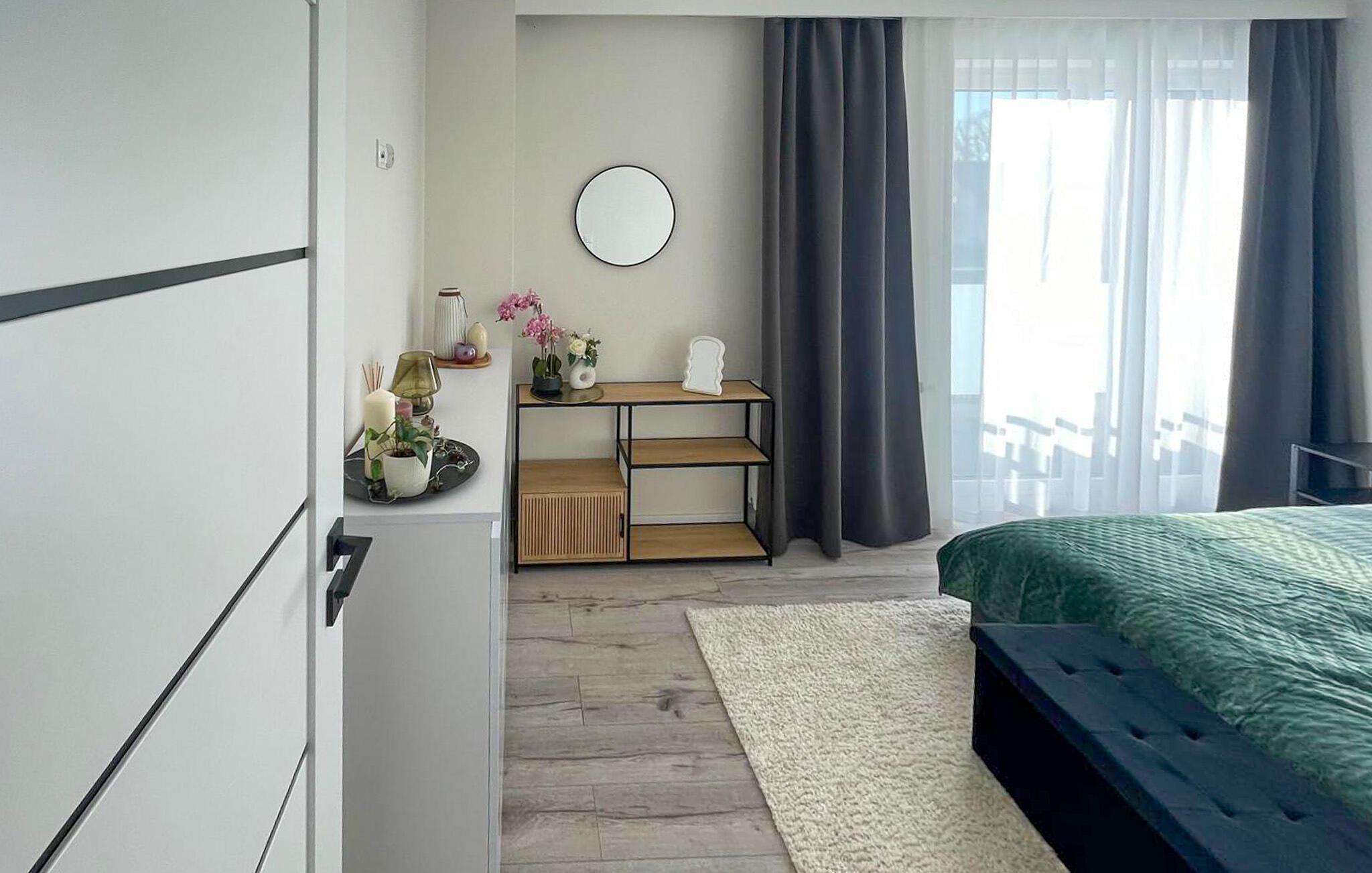 Dieses elegante Ferienhaus nahe der Bucht Zatoka Cicha verbindet modernes Design mit Komfort und schafft eine Wohlfühloase für Ihren Urlaub. Die lichtdurchfluteten Räume bieten Ihnen viel Platz, um zur Ruhe zu kommen. Die offene Gestaltung und stilvolle Einrichtung verleihen dem Haus ein luxuriöses Ambiente, während die Sonnenterrasse und der gepflegte Garten Sie einladen, die Natur direkt vor der Tür zu genießen und die Tage entspannt ausklingen zu lassen.