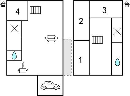 Badezimmer (nr. 1) - WC. Warmes und kaltes Wasser. Dusche