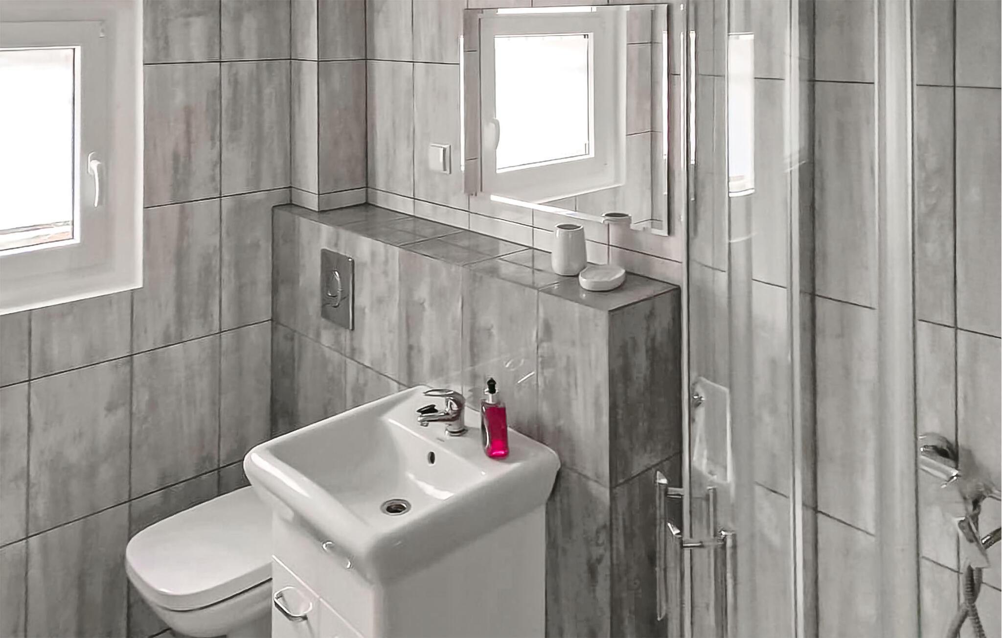 Badezimmer 4m2 (nr. 1) - WC. Warmes und kaltes Wasser. Dusche