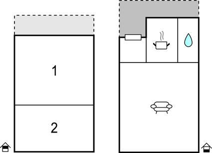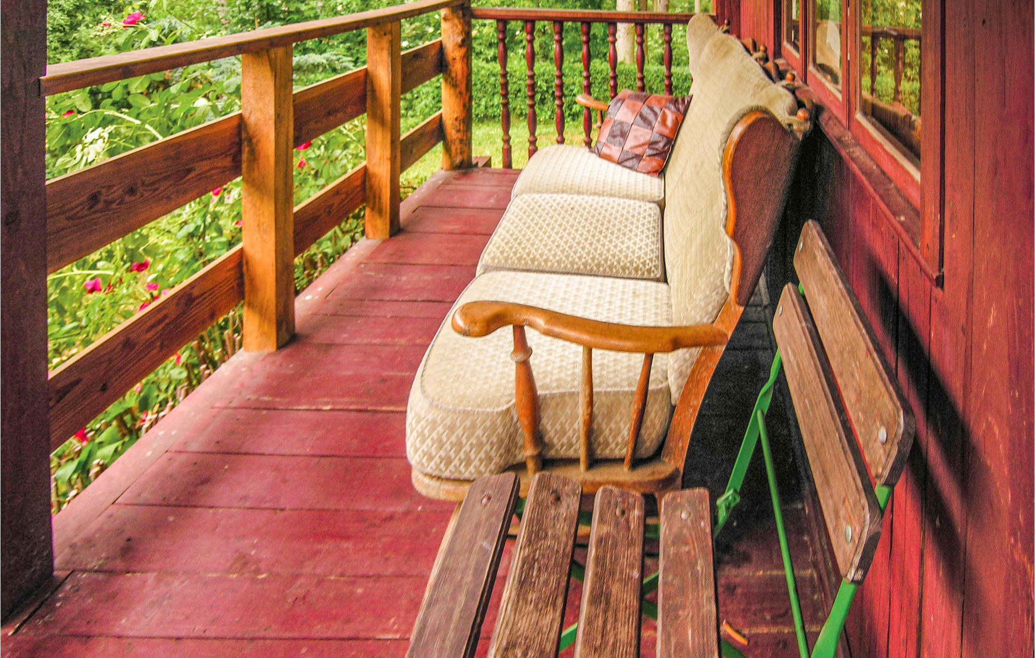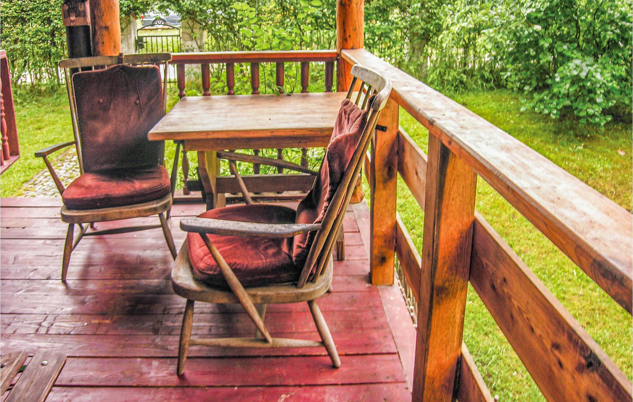 Dieses schlichte Ferienhaus aus Holz liegt in ruhiger Umgebung und eignet sich für Gäste, die einen unkomplizierten Aufenthalt inmitten der Natur verbringen möchten. Machen Sie es sich im Wohnbereich auf den gemischten Möbeln bequem und gestalten Sie Ihre Abende nach Ihren Wünschen. Nutzen Sie die Sitzecke für gemeinsame Gespräche oder ein einfaches Abendessen. Beachten Sie die steile Treppe, die die beiden Etagen miteinander verbindet.
