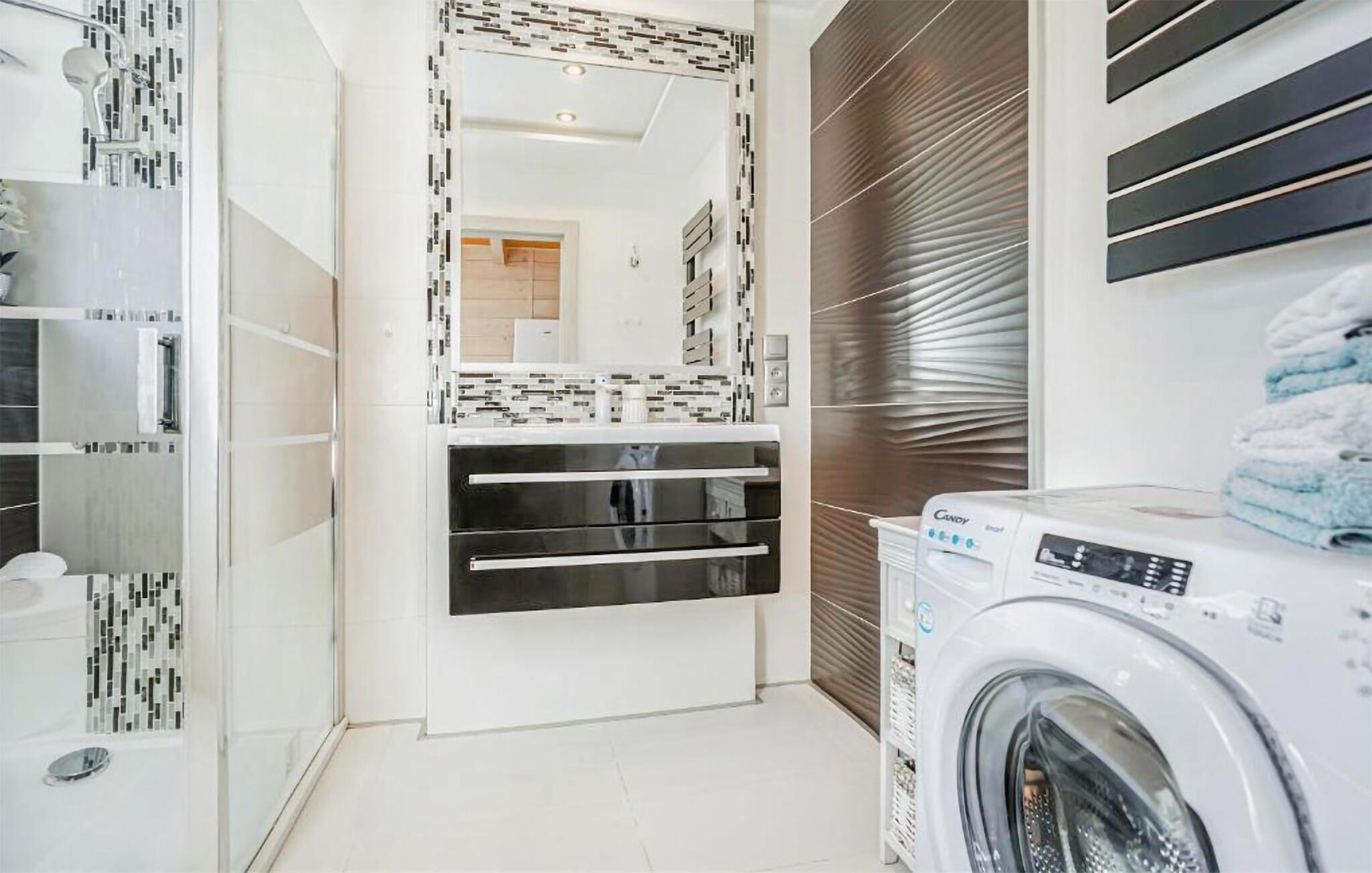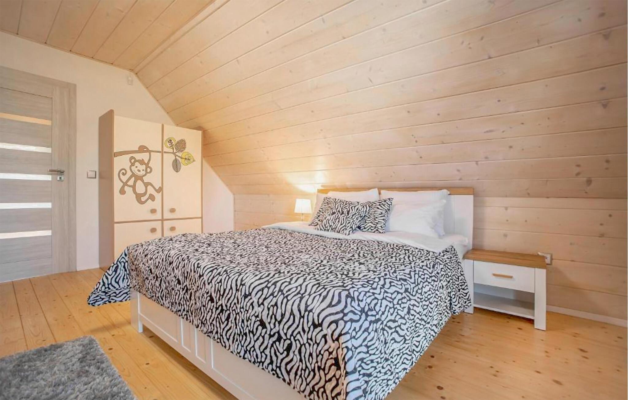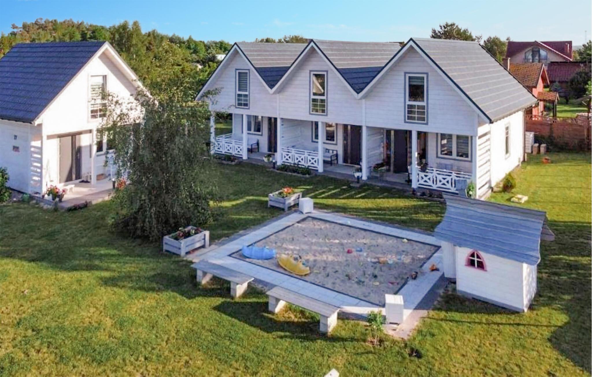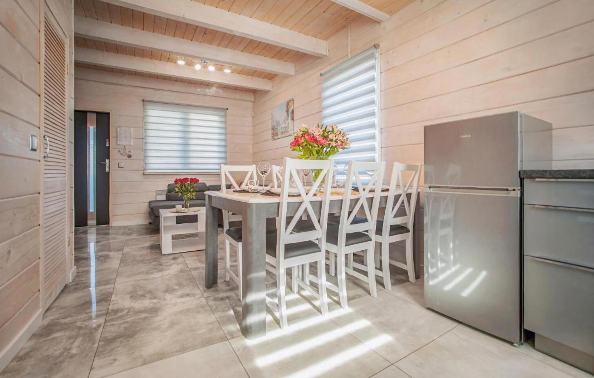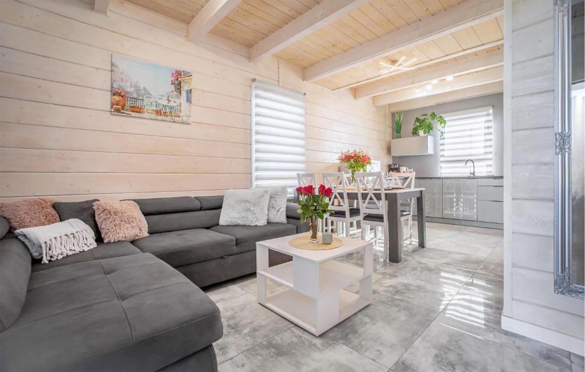 Nur einen kurzen Spaziergang vom malerischen Koprowo-See entfernt und unweit der Ostseeküste gelegen, bietet dieses Ferienhaus den idealen Rückzugsort für Ihre Familie. Lassen Sie sich von der idyllischen Umgebung und der unberührten Natur verzaubern. Beginnen Sie Ihren Tag mit einem leckeren Frühstück, das Sie am Esstisch neben der modernen, offenen Küche genießen können. Auf dem Sofa ist viel Platz für alle zum Relaxen und Verweilen.