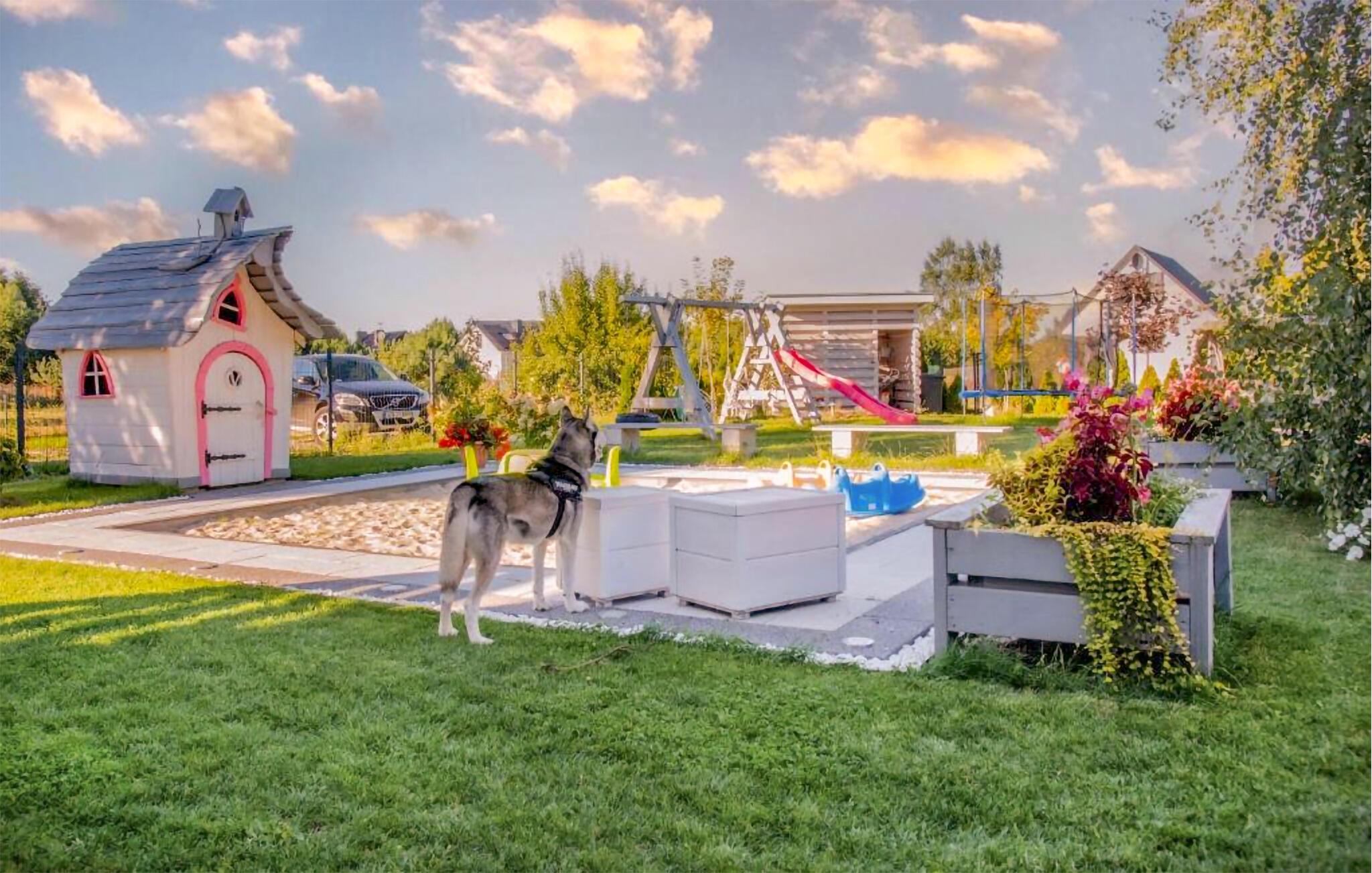 Die frische Luft und die Ruhe dieser Gegend sorgen für den idealen Start in den Tag. Versammeln Sie sich draußen auf der Terrasse und besprechen Sie die Pläne des bevorstehenden Tages. Abends sorgt der Grill für einen geselligen Abend mit einem leckeren Barbecue. Ihre Kinder werden sich über die zahlreichen Spielmöglichkeiten wie Trampolin, Schaukel oder Rutsche freuen.