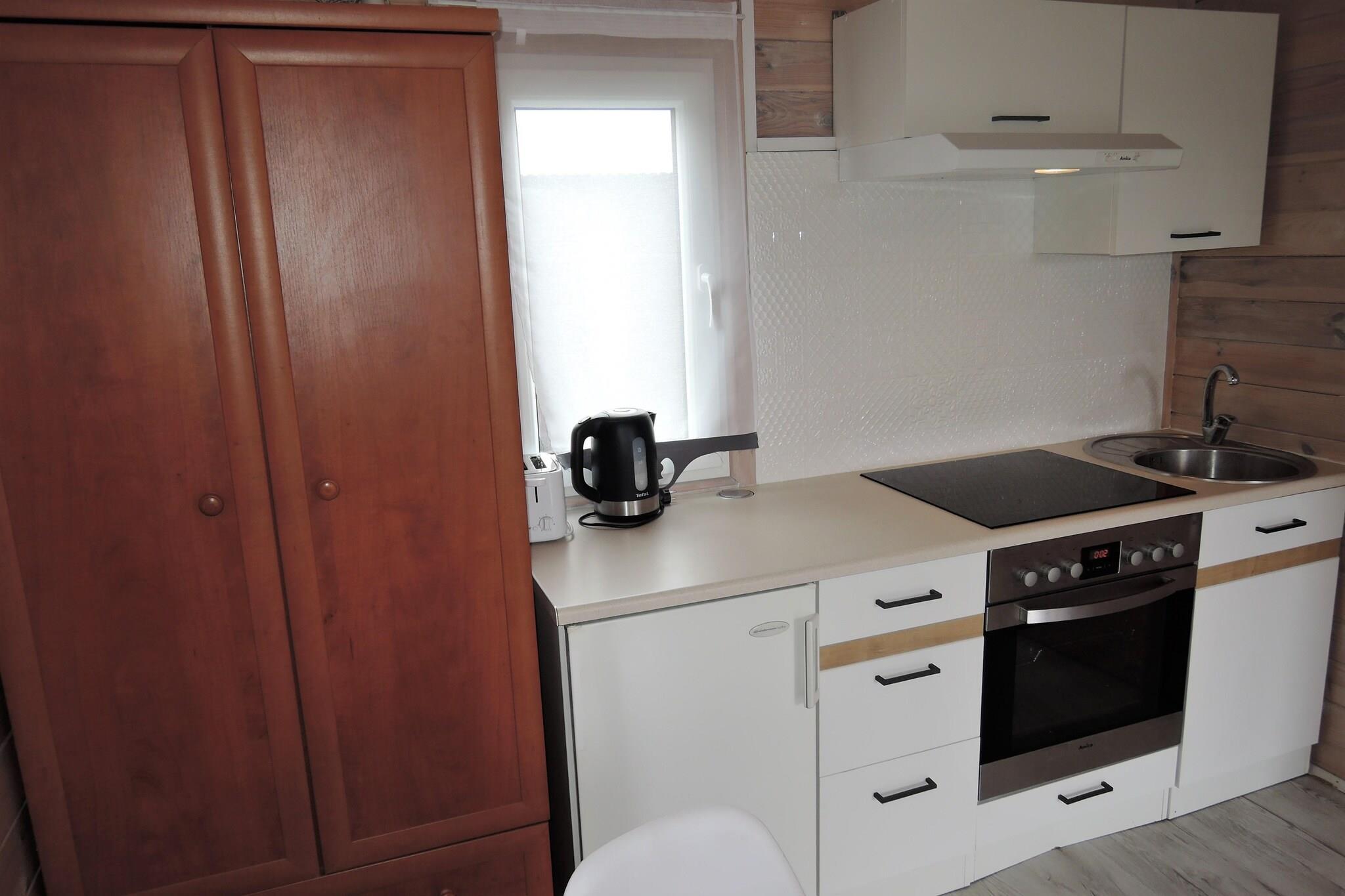 Gepflegtes Ferienhaus - ideal für einen ruhigen Urlaub für die kleine Familie! Nur wenige Kilometer von der Ostsee entfernt liegt Kolczewo, ein kleines, ruhiges Dorf. Es bietet sich ideal für diejenigen an, die sich vom Stadttrubel entspannen und zurückziehen wollen. In der Umgebung gibt es sieben Seen zum Angeln. In der näheren Umgebung liegen die Orte Swinemünde und Misdsroy, welche sich für einen Tagesausflug anbieten. Aktivitäten in der Nähe : Verbessern Sie Ihr Handicap auf dem örtlichen Golfplatz, welcher der Einzige auf der Insel Wollin ist. Kolczewo grenzt an den Kolzower See und die polnische Ostsee ist nicht weit entfernt. Den Strand erreichen Sie bequem über einen Weg durch den Wald. Mit dem Linienbus können Sie auch direkt nach Kolberg oder Swinemünde fahren, in den Sommermonaten verkehrt der Bus recht häufig zwischen den beiden Orten.
