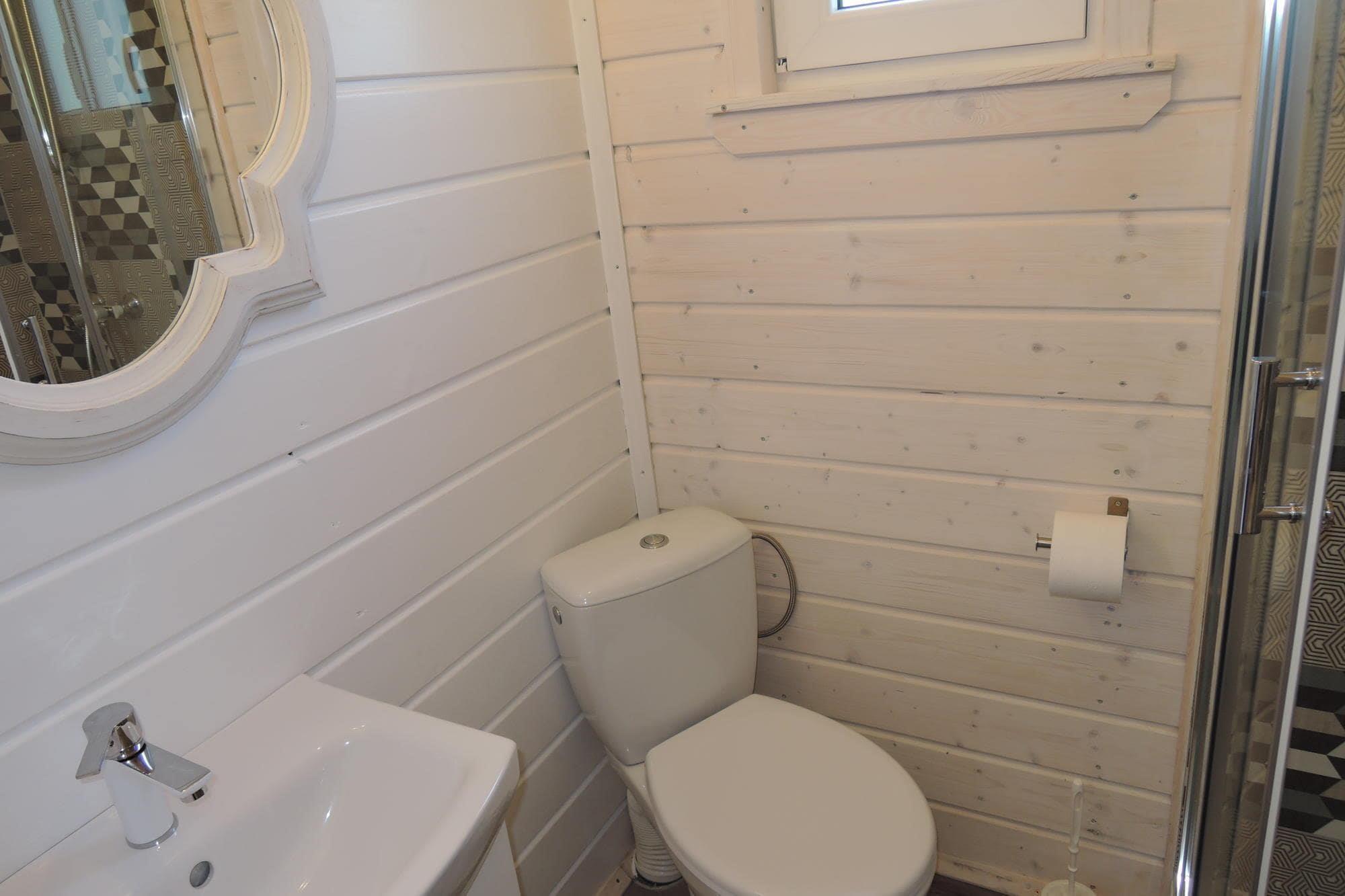 Komfortabler Bungalow in 2021 erbaut; ideal für einen Familienurlaub mit kleinen Kindern. Sie verfügen über ein gemütliches Wohn- und Esszimmer mit moderner Küchenzeile und Essecke, ein Duschbad mit Fenster und zwei Schlafzimmer, von dem eines ein Etagenbett für drei Personen hat (untere Maße 1,20 m x 2 m, obere Maße 0,90 m x 2 m). Aktivitäten in der Nähe : Kolczewo ist ein kleiner Ort, nur wenige Kilometer von der Ostsee entfernt. Er ist der perfekte Ausgangspunkt, um Swinemünde oder Misdroy zu besuchen. In der Nähe gibt es sieben Seen zum Angeln Mobilität : Nicht geeignet für Personen mit eingeschränkter Mobilität