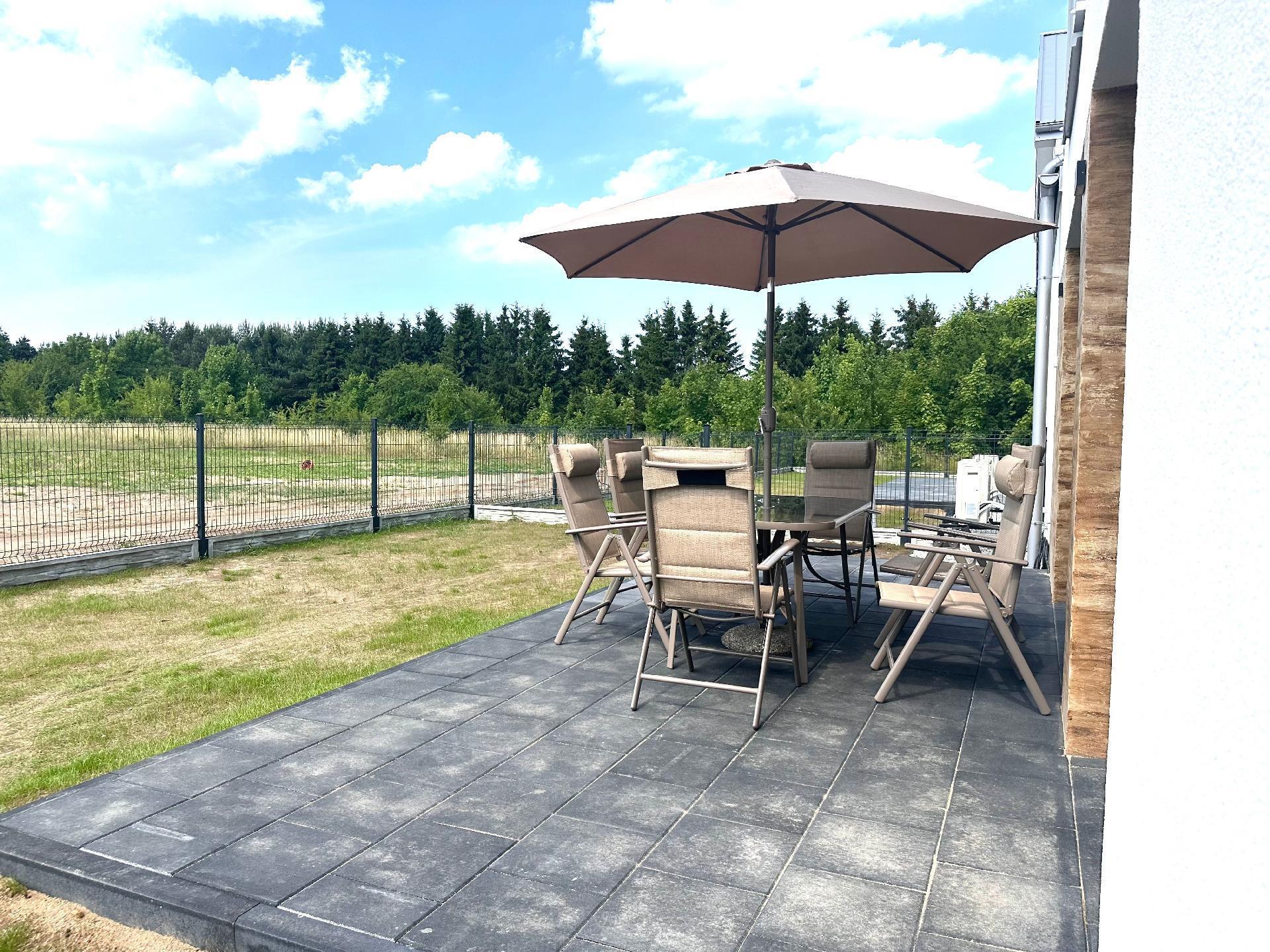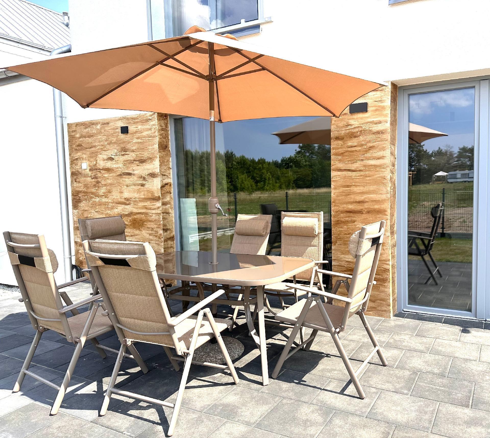 Auf der Terrasse stehen Ihnen Gartenmöbel, Holzkohlegrill, Sonnenschirm, Liegestühle zur Verfügung.