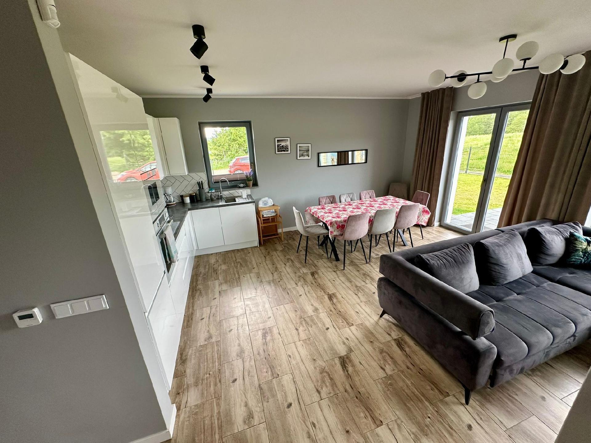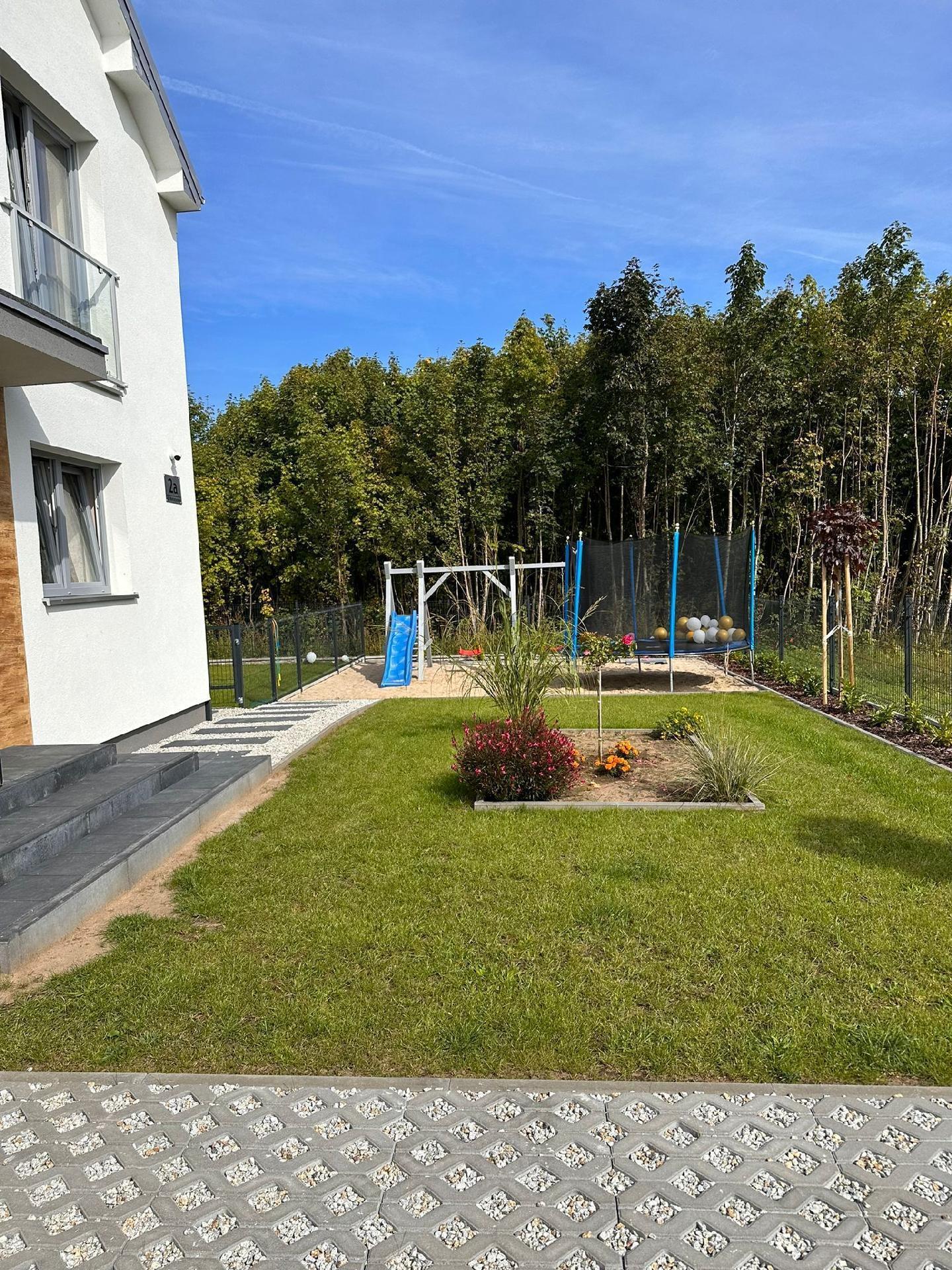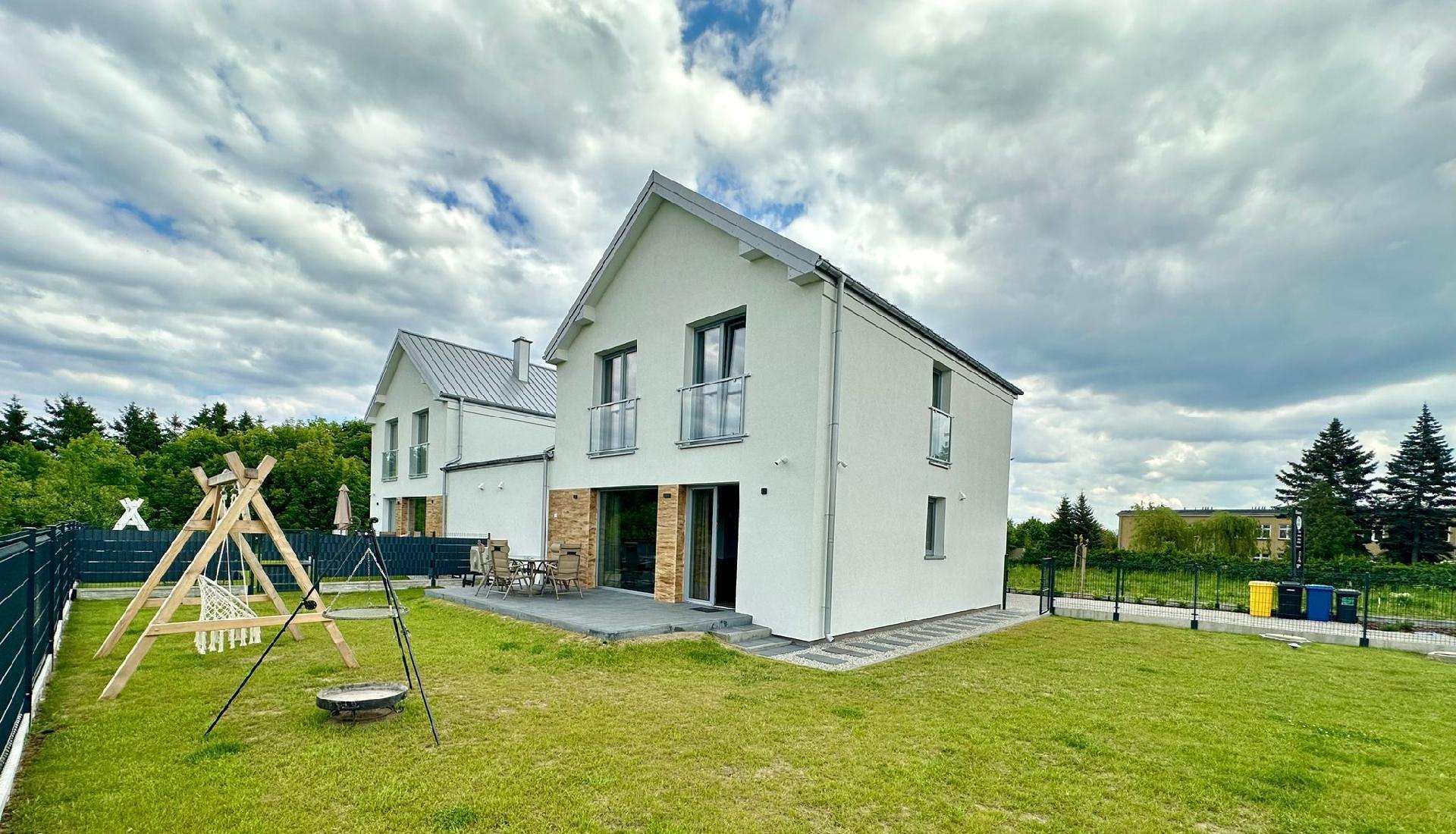 Dieses Haus ist eine von zwei identischen Doppelhaushälften, die nebeneinander liegen und einen Garagenplatz haben. Zum Haus gehört ein Garten mit Terrasse und Grill zur eigenen Nutzung. Das Haus befindet sich in der Nähe des Nationalparks Wolin und in unmittelbarer Nähe zur Ostsee, nur 3 km. Die Nachbarschaft ist ruhig und friedlich.