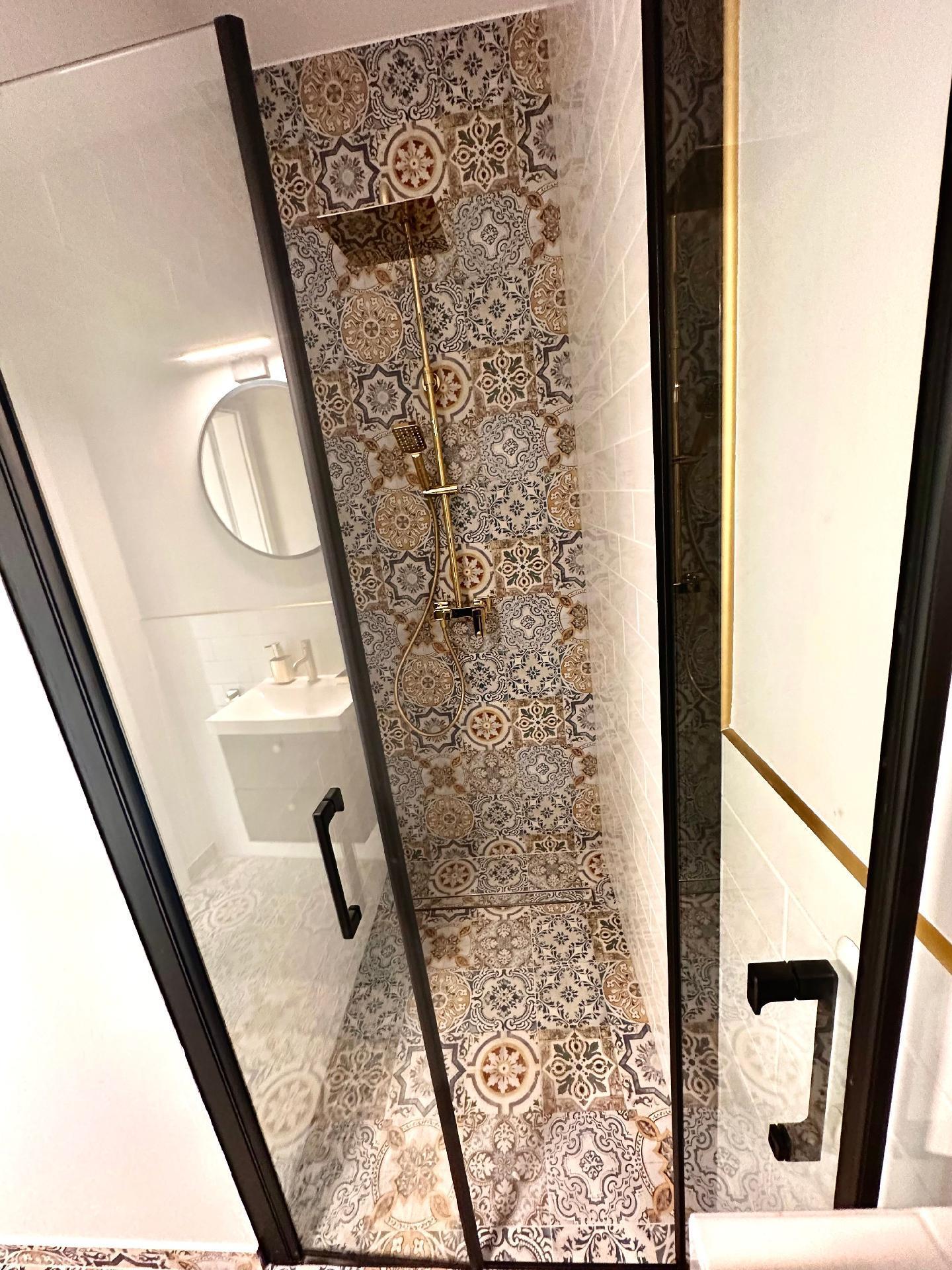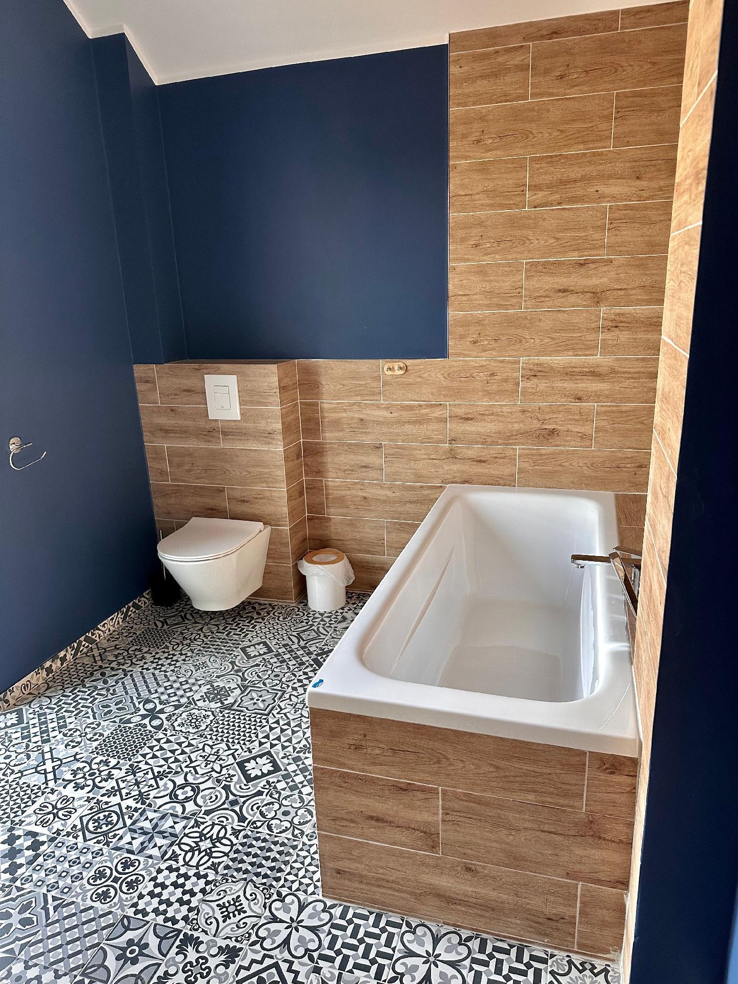 Es gibt 2 Bäder mit Dusche und Badewanne.