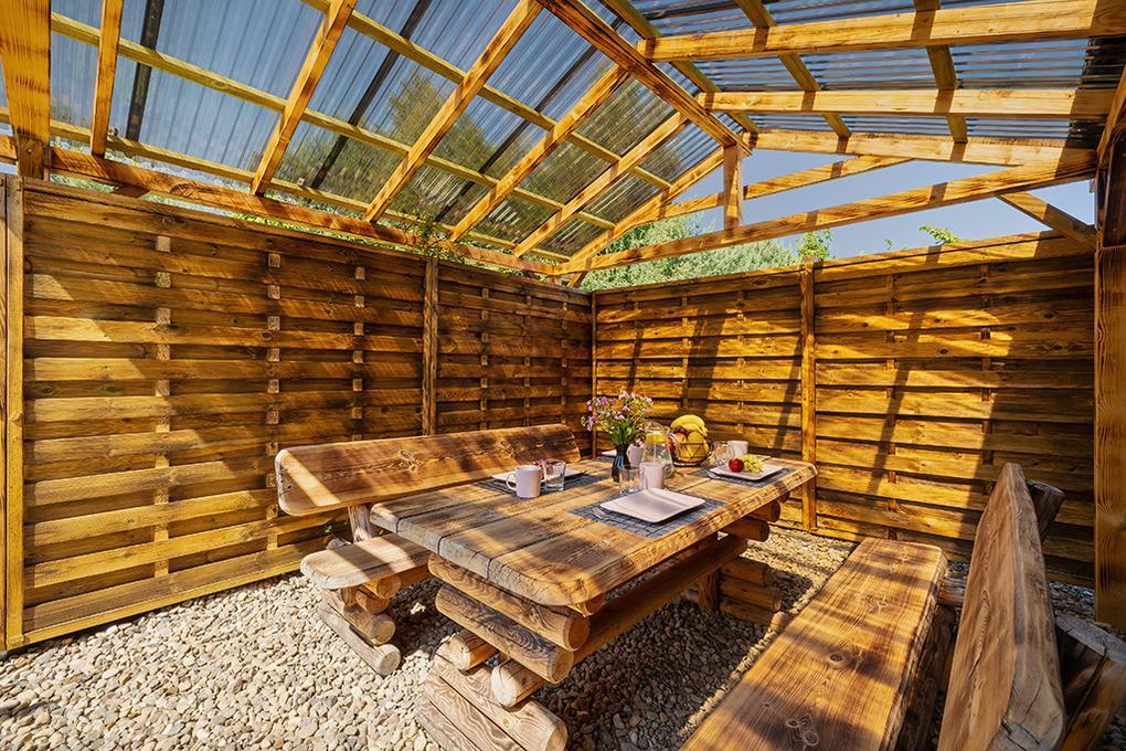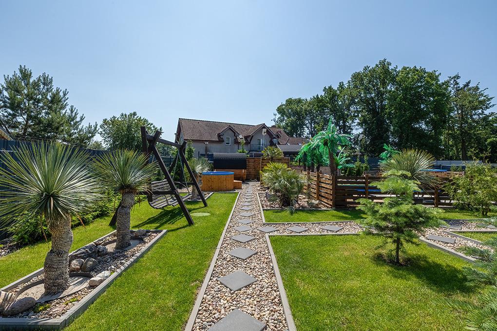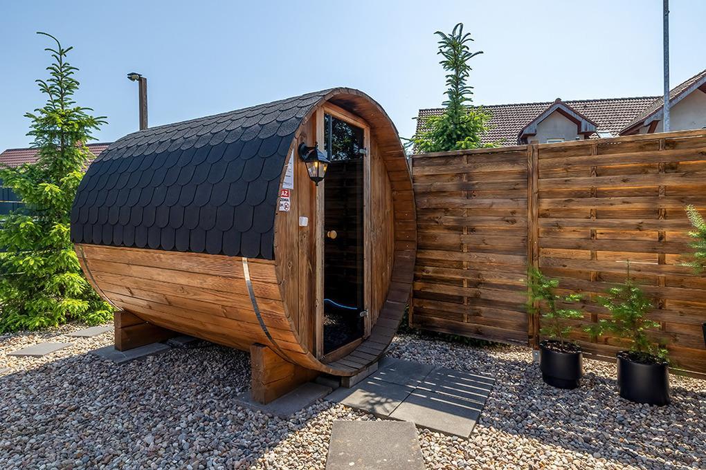 Haus: Drei sehr schöne, komfortable Ferienhäuser mit Sauna, Pool, Whirlpool, Hot Tub auf einem mit viel Liebe zum Detail begrüntem Grundstück, 2020 neu erbaut. Moderne Einrichtung mit gemütlichem Ambiente. Kostenloses Internet über WLan (LTE). Im Erdgeschoß Klimaanlage mit Heizfunktion, E-Radiatoren auf Wunsch, Warmwasser über Durchlauferhitzer. Große, überdachte Terrasse mit Sitzmöbeln, gemauertem Grill, Blick auf den Garten: gemeinschaftliches Sauna-Häuschen, Hot Tub, Whirlpool (Gebühr), Pool mit Liegen, Außendusche, Hollywoodschaukel, Holz Pavillon mit Kicker Tisch, Billard. Kinderspielplatz mit Sandkasten, Schwingbrücke, Schaukeln, Wippe, Rutsche, Trampolin. Kleiner Fußball Platz, Volleyball Feld.1 Pkw-Stellplätze/Haus im Mietpreis inklusiv. Hinweis: Die maximale Personenzahl darf 6 nicht überschreiten.