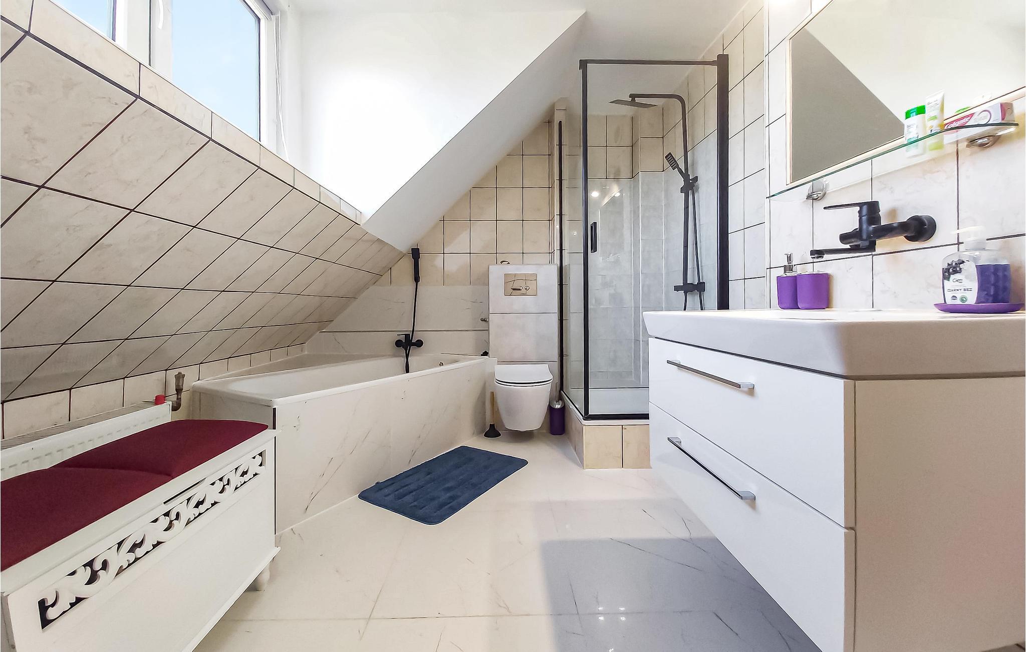 Badezimmer (nr. 1) - WC. Warmes und kaltes Wasser. Dusche und Badewanne