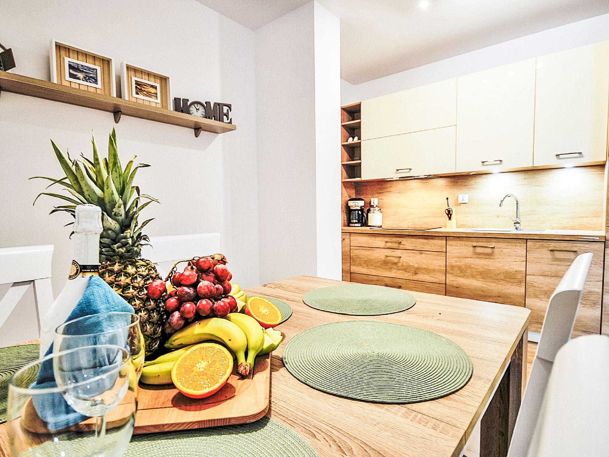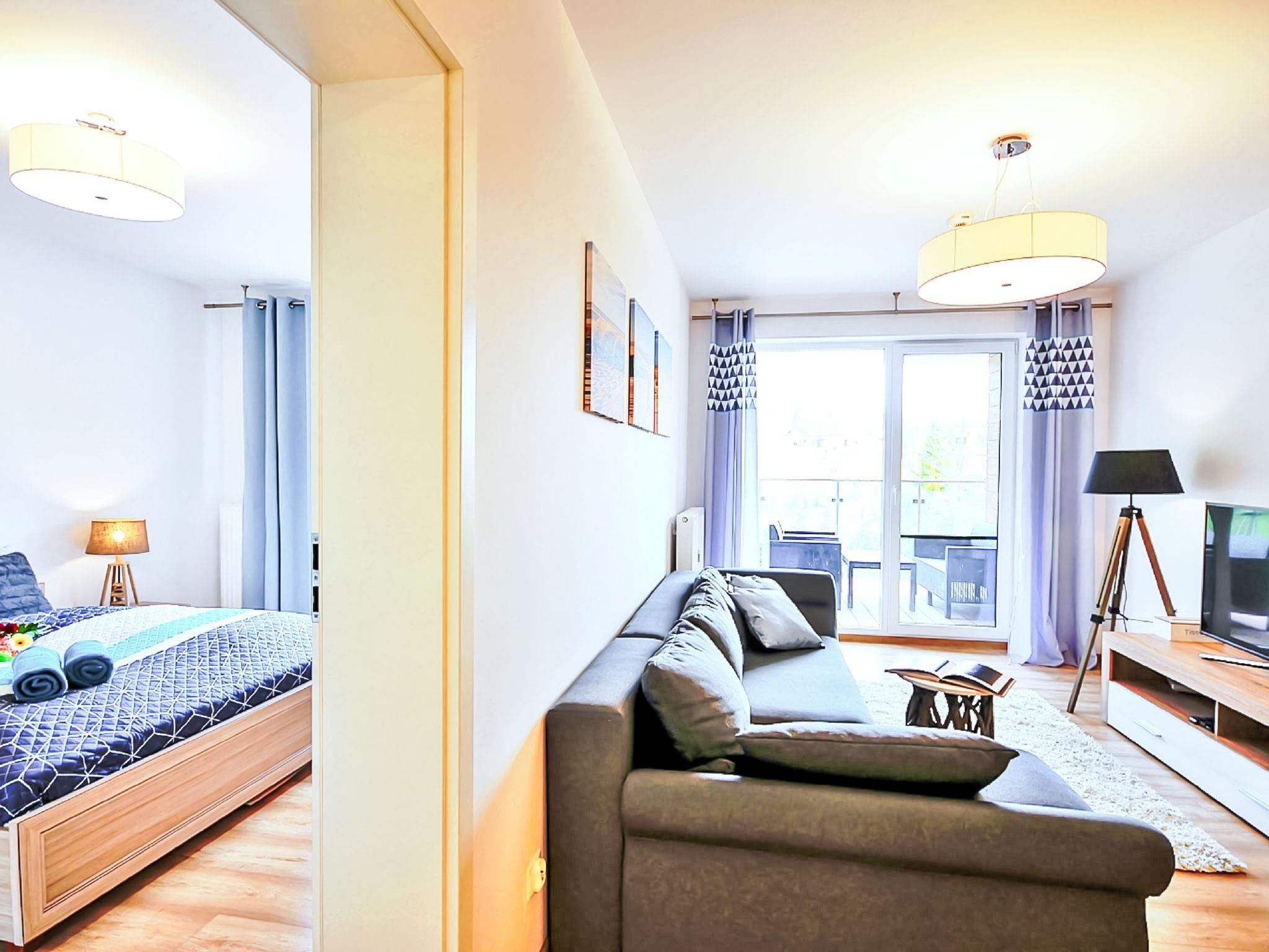 Modernes, komfortables Appartementhaus "Szum Morza", Baujahr 2017. Am Ortsrand, ruhige, sonnige Lage, 350 m vom Meer, im Grünen. Zur Mitbenutzung: Hallenbad beheizt (6 x 17 m, Öffnungszeiten Schwimmbad: 09:00-21:00). Dusche/WC im Poolbereich, Kinderbecken, Sprudelbad, Kinderspielplatz. Im Hause: Sauna, Fitnessraum, Spielzimmer, Fahrstuhl, Zentralheizung, Alarmanlage. Parkplatz beim Haus auf dem Grundstück, öffentliche Parkplätze auf der Strasse. Einkaufsgeschäft 1.3 km, Lebensmittelgeschäft 850 m, Supermarkt, Restaurant 300 m, Bushaltestelle 1.1 km, Bahnstation 2.5 km, Sandstrand 350 m. Sporthafen 3 km. Nahe gelegene Sehenswürdigkeiten: Oceanarium 3 km, Molo 3 km, Park Dziki Zachód Zieleniewo 7 km. Bewachte Residenz.