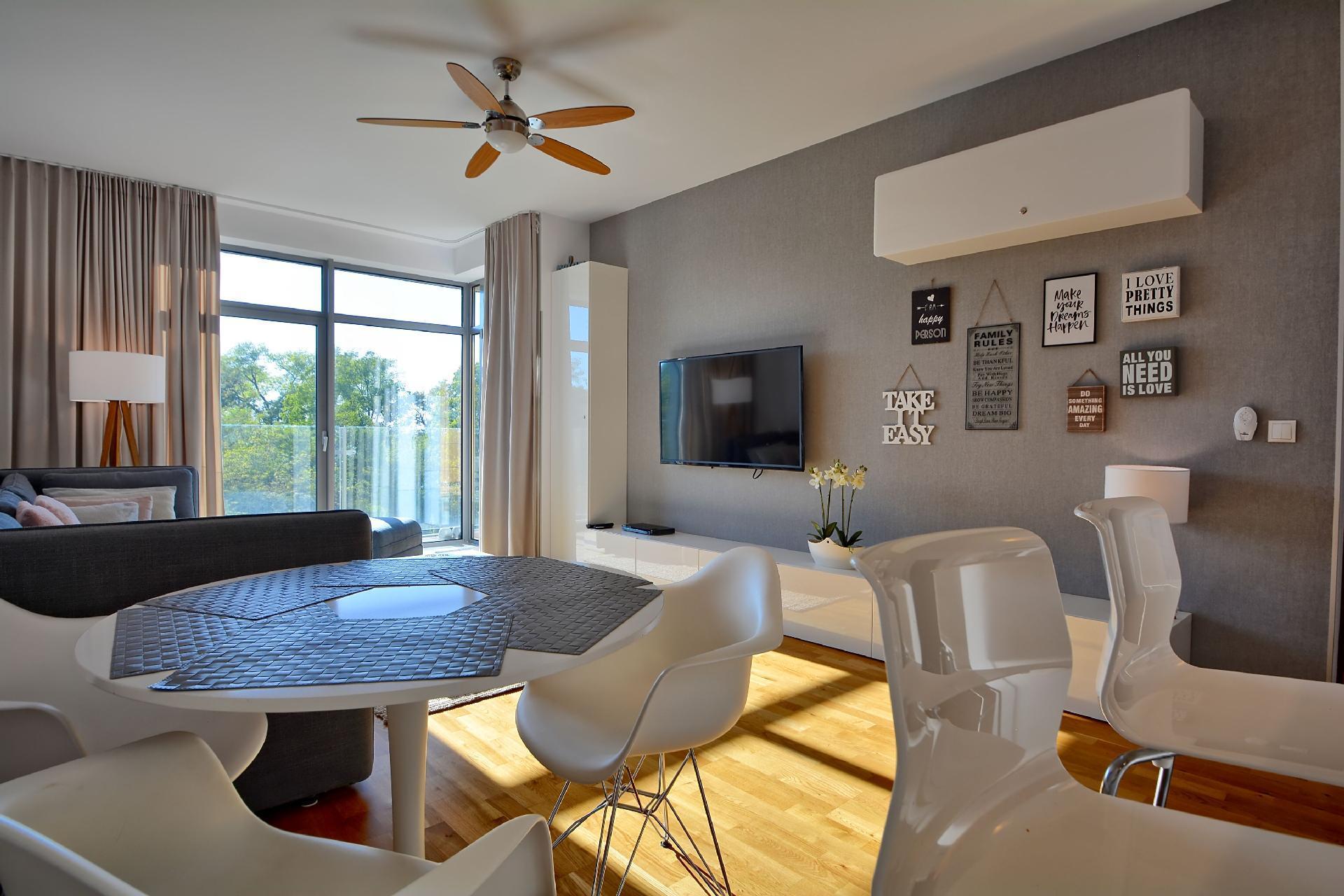 Unsere gemütliche, private, klimatisierte Wohnung befindet sich in der Anlage des DIUNE Hotel***** & Resort. Der Hauptvorteil dieser Anlage ist ihre Lage. Der Komplex befindet sich im Kurteil der Stadt, in einer für den Autoverkehr gesperrten Zone, direkt im Seaside Park