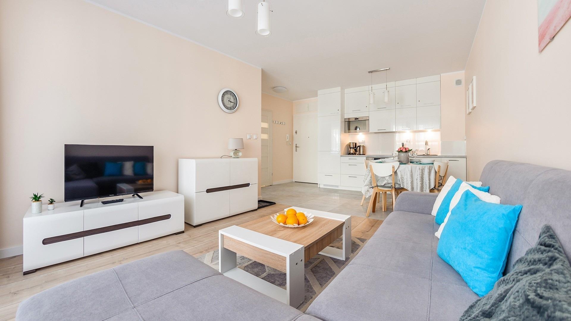 Blizej Morza ist ein moderner Apartmentkomplex im zentralen Kurviertel von Kolobrzeg, nur wenige Schritte vom Küstenpark, der Promenade, dem Strand und dem Meer entfernt. Das Gebäude verfügt über einen Aufzug mit Zugang zur Tiefgarage, ein voll ausgestattetes Fitnessstudio, einen Fahrradraum, eine Lobby sowie eine Dachterrasse mit Liegestühlen zum Entspannen. Gegenüber befindet sich ein Hotel mit Restaurant und einem Wasser-Thermal-Komplex, der gegen Aufpreis genutzt werden kann. Die Apartments sind mit frischer Bettwäsche und Handtüchern ausgestattet, und Gäste erhalten 10 % Rabatt auf Massagen, die direkt im Apartment oder vor Ort angeboten werden. Ideal für Familien, Paare und alle, die Erholung in Meeresnähe suchen.