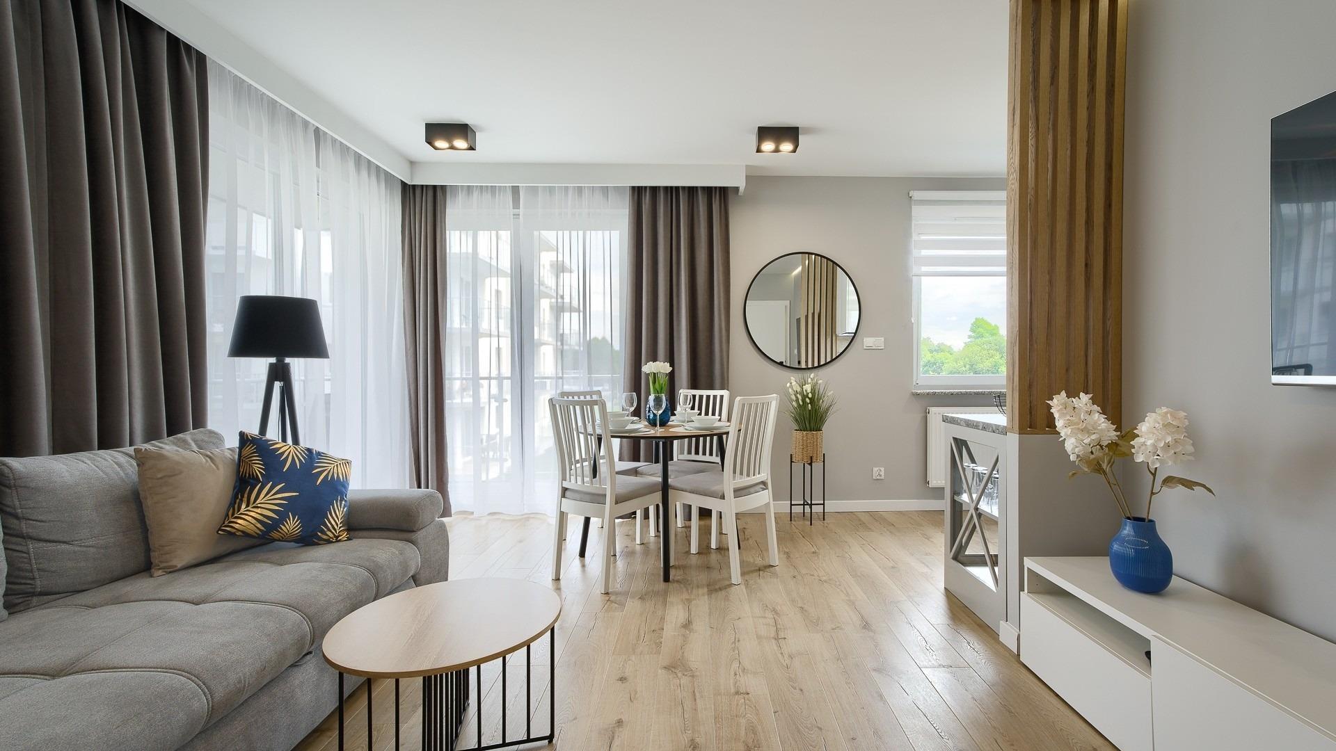 • Haustiere sind in der ausgewählten Wohnung erlaubt. Die Kosten für den Aufenthalt mit einem Haustier betragen 40 PLN pro Tag.