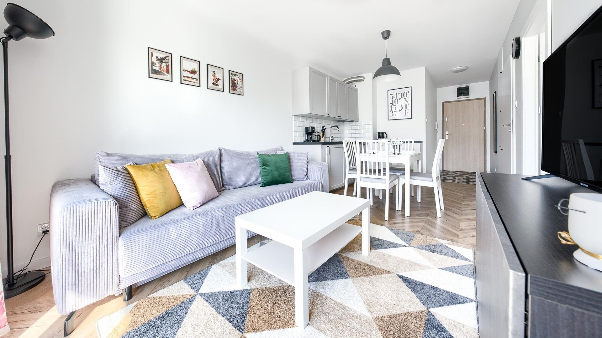 • Haustiere sind in der ausgewählten Wohnung erlaubt. Die Kosten für den Aufenthalt mit einem Haustier betragen 40 PLN pro Tag.