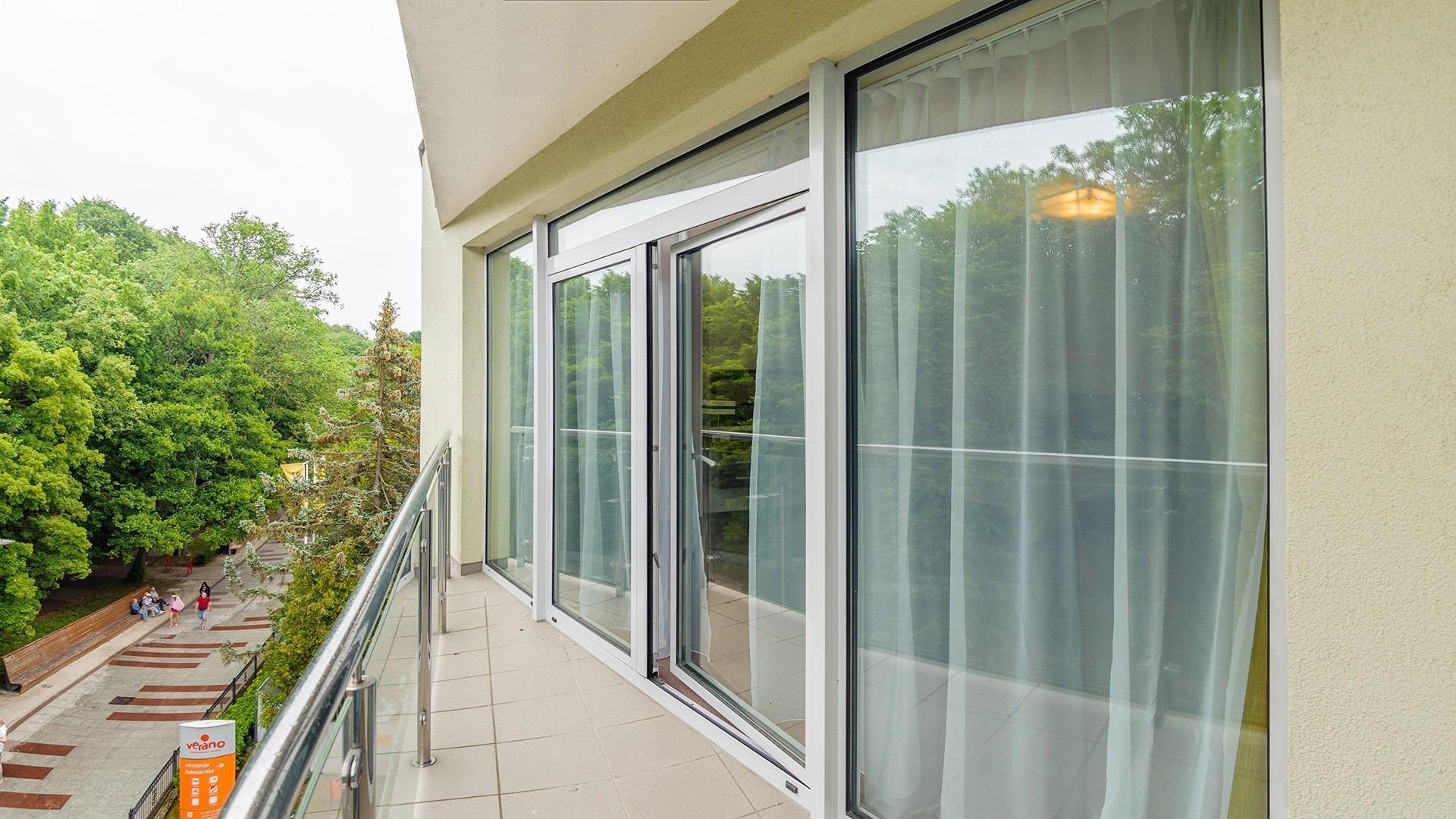 Die Unterkunft liegt in kurzer Entfernung zum Strand, direkt an der Promenade. Die Umgebung ist grün und ruhig. Das Gebäude befindet sich direkt am Küstenpark. In der Nähe gibt es zahlreiche Restaurants, Pubs und Geschäfte. Vor Ort gibt es ein Café sowie einen Kinderspielplatz. Die Gäste können gegen Gebühr das Solebad und SPA-Anwendungen nutzen. Die Unterkunft bietet auch eine breite Palette an Kurbehandlungen, und es gibt kostenpflichtige Parkplätze (Parkplatzreservierung an der Hotelrezeption möglich).