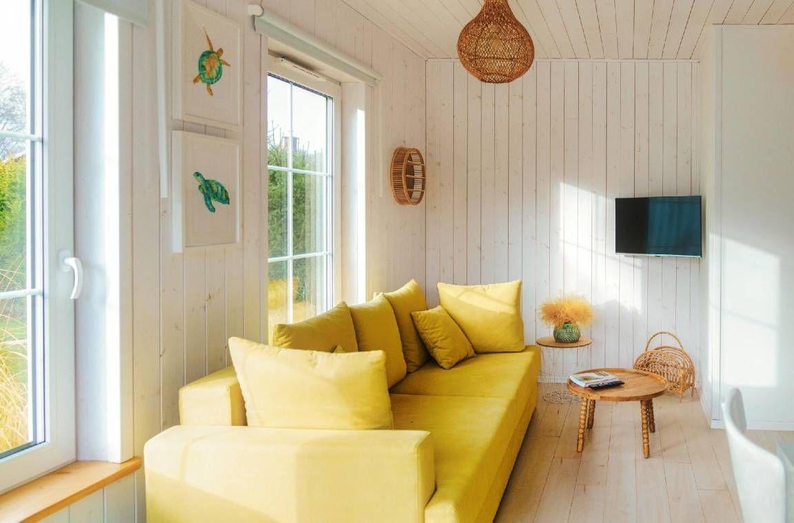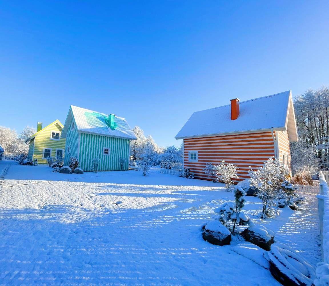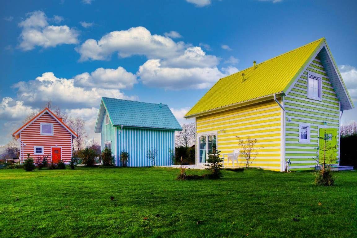 Morskie Domki Kopalino sind 5 Hütten mit schönen, bunten Streifen. Sie sind die einzigen dieser Art in Polen!