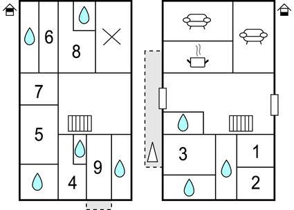 Badezimmer (nr. 6) - WC. Warmes und kaltes Wasser. Dusche