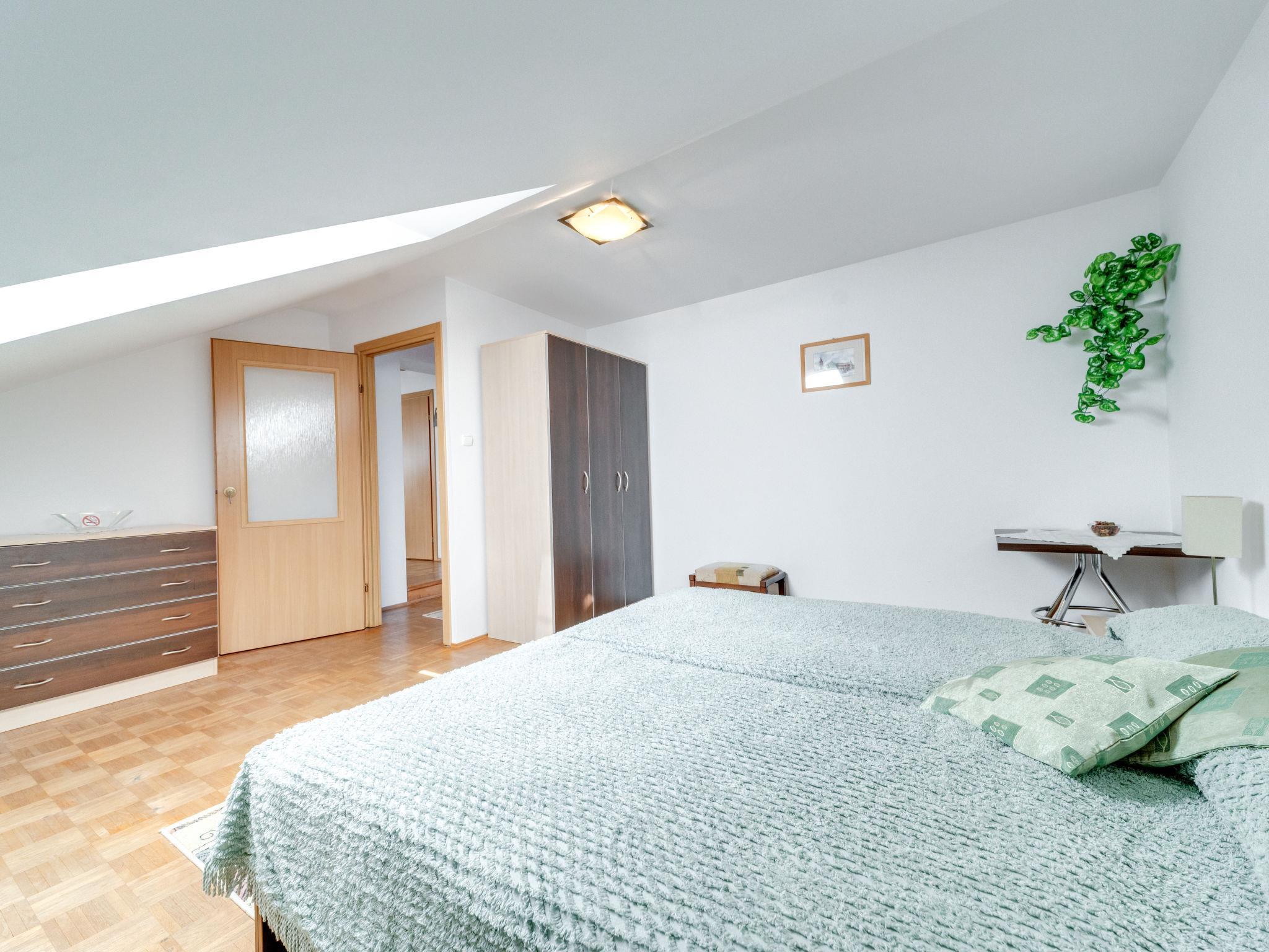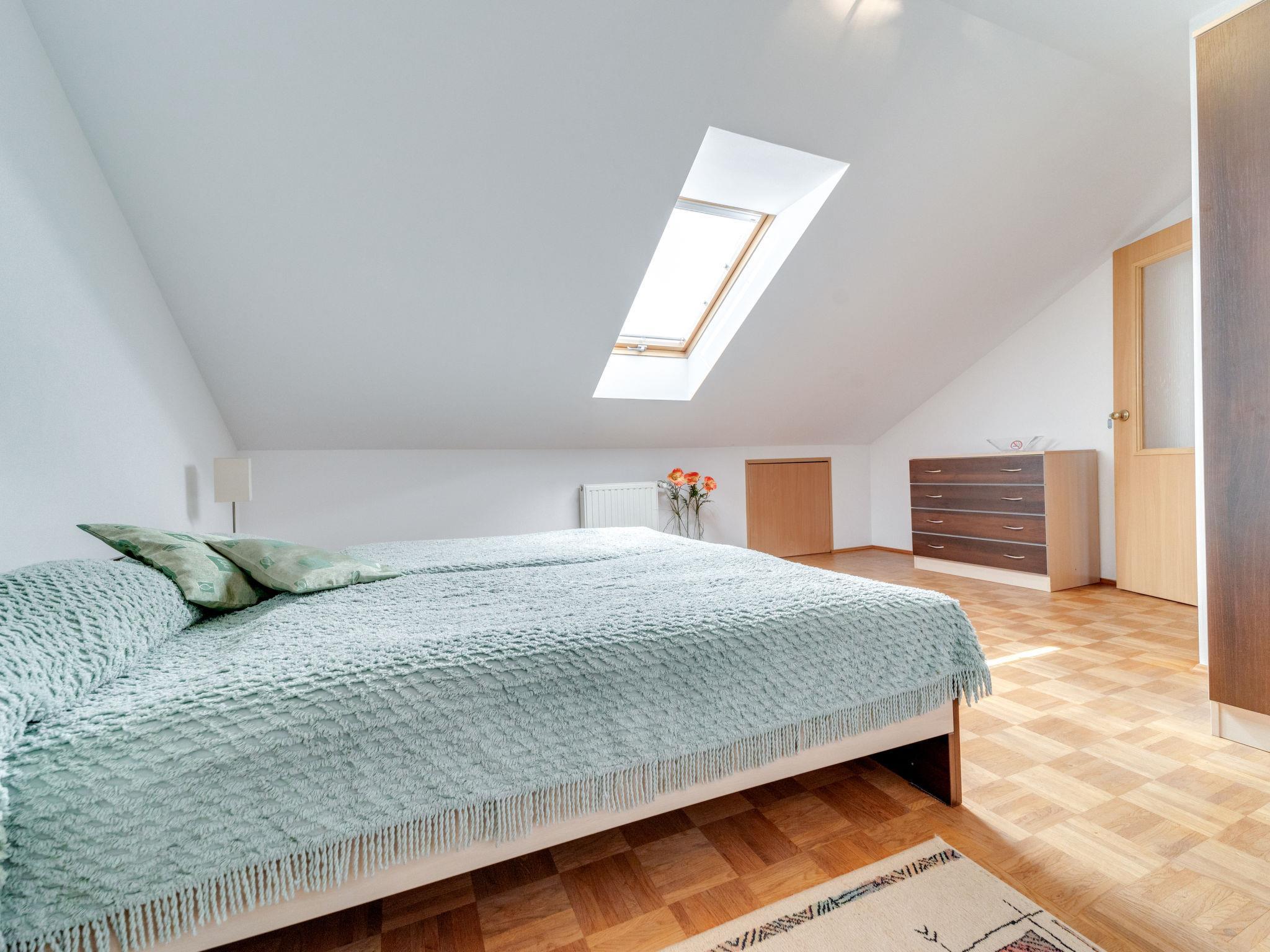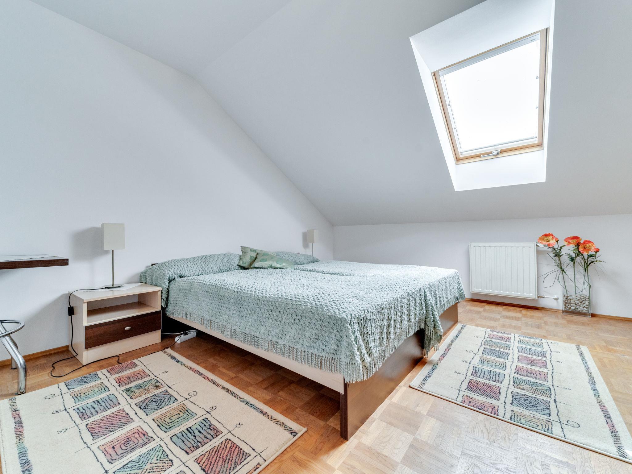 3-Zimmer-Wohnung 115 m2, im Dachgeschoss. Sehr zweckmässig und modern eingerichtet: Wohn-/Schlafzimmer mit 1 Doppeldiwanbett, Sat-TV, Radio, Stereoanlage und DVD. 1 Zimmer mit Dachfenster mit 3 Betten (90 cm, Länge 200 cm). 1 Zimmer mit Dachfenster mit 2 Betten (90 cm, Länge 200 cm). Offene Küche (4 Kochplatten, Backofen, Mikrowelle, elektrische Kaffeemaschine). Bad/WC. Schöne Sicht auf den Garten.