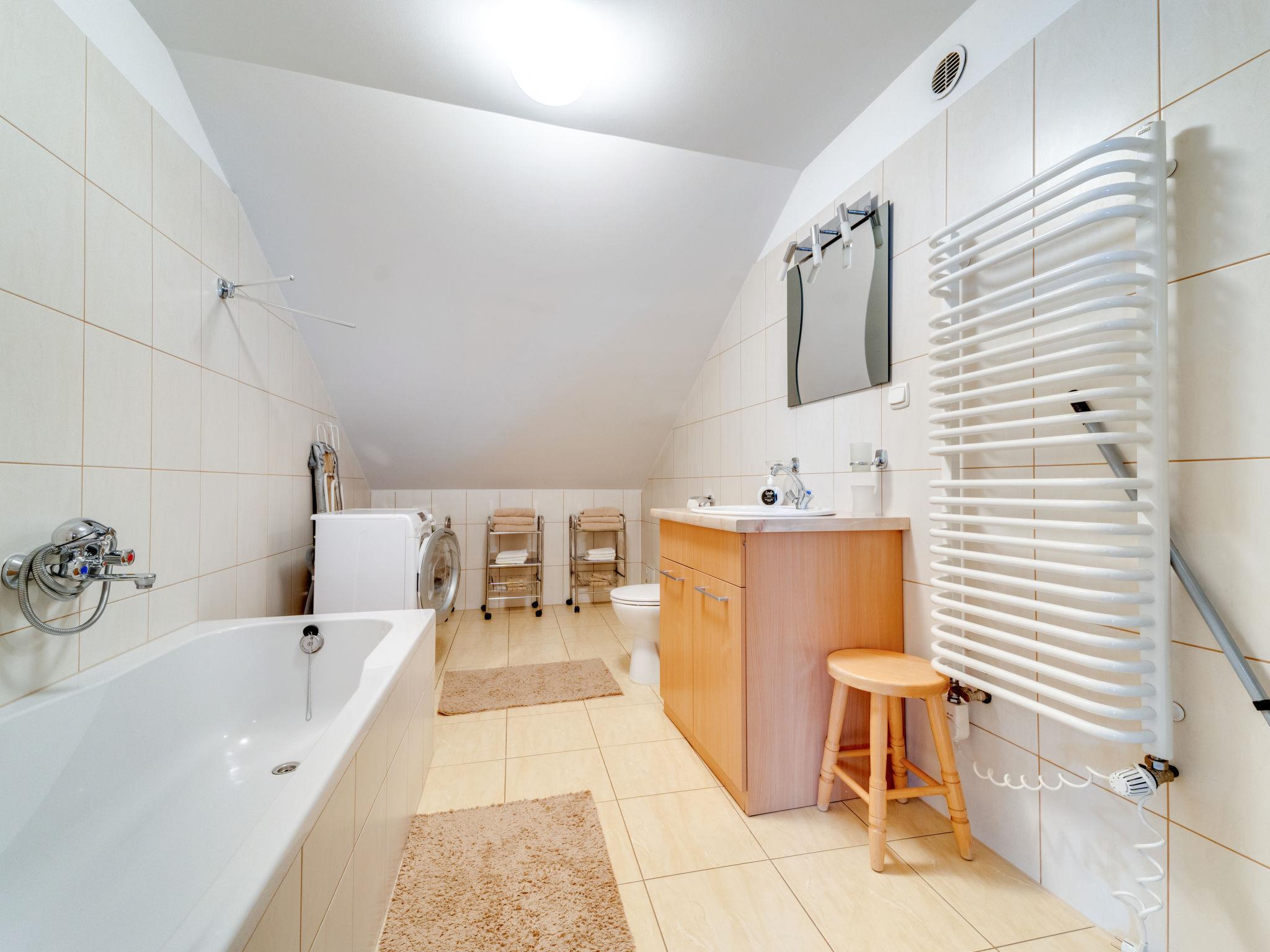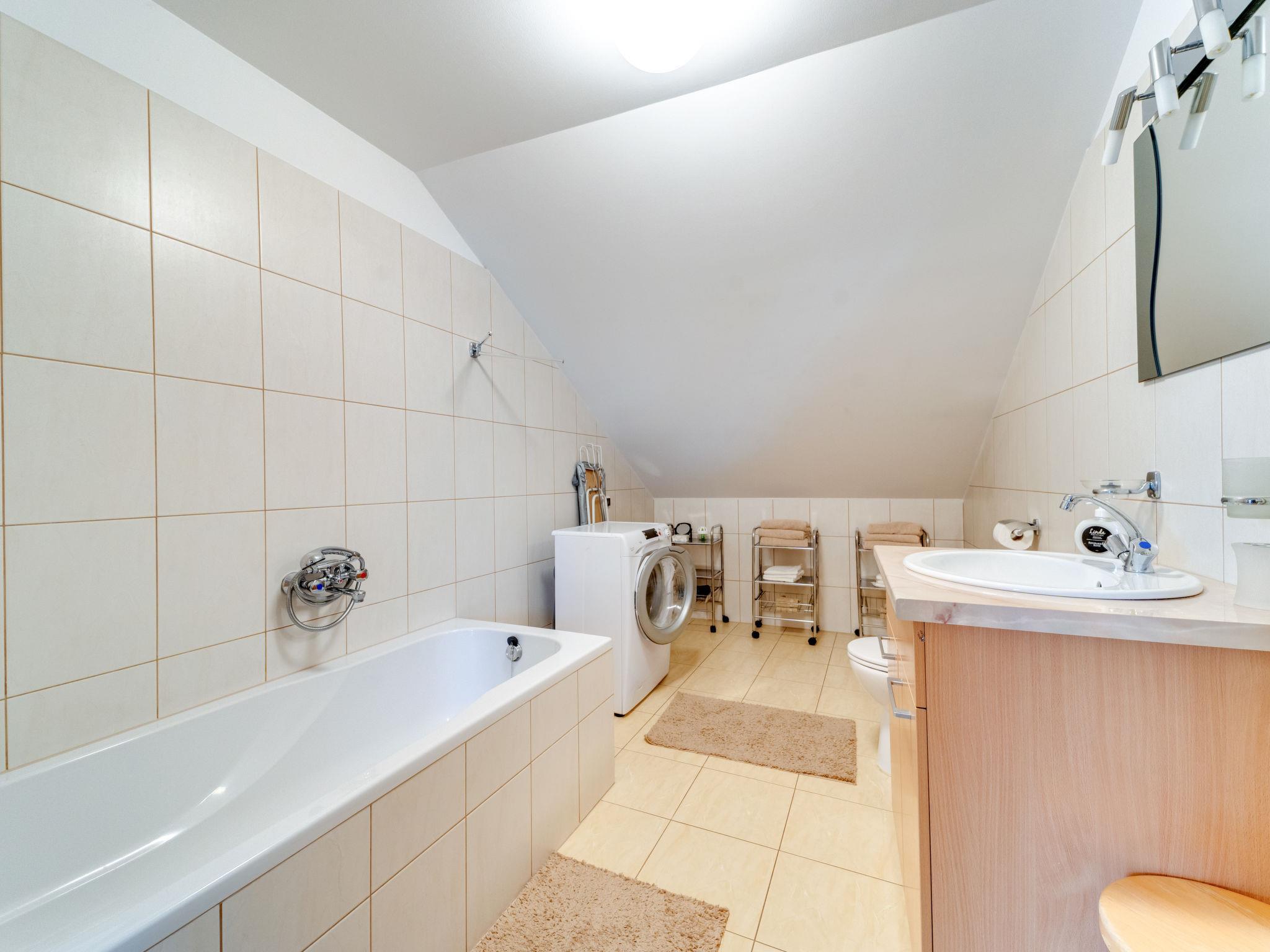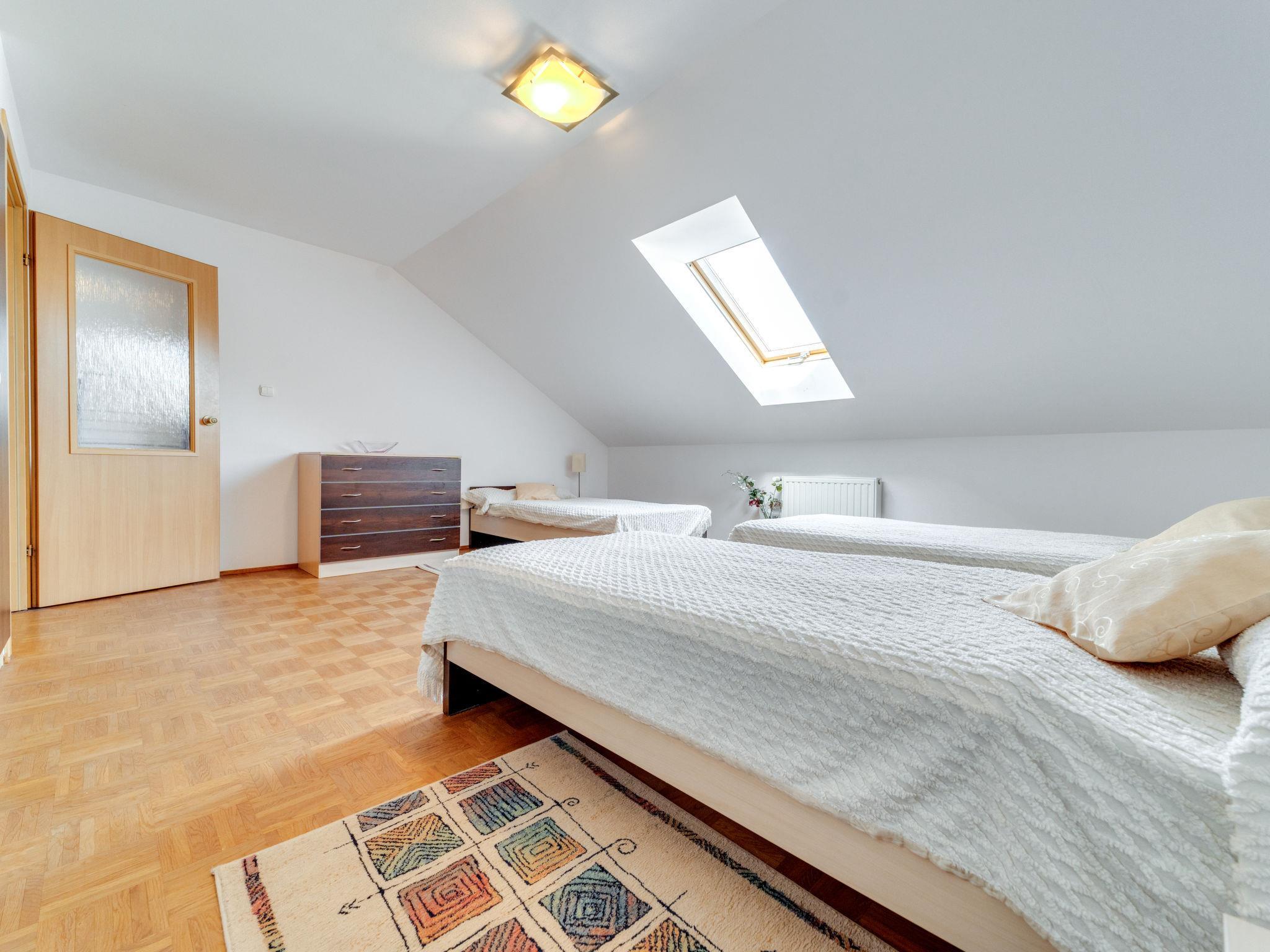 3-Zimmer-Wohnung 115 m2, im Dachgeschoss. Sehr zweckmässig und modern eingerichtet: Wohn-/Schlafzimmer mit 1 Doppeldiwanbett, Sat-TV, Radio, Stereoanlage und DVD. 1 Zimmer mit Dachfenster mit 3 Betten (90 cm, Länge 200 cm). 1 Zimmer mit Dachfenster mit 2 Betten (90 cm, Länge 200 cm). Offene Küche (4 Kochplatten, Backofen, Mikrowelle, elektrische Kaffeemaschine). Bad/WC. Schöne Sicht auf den Garten.