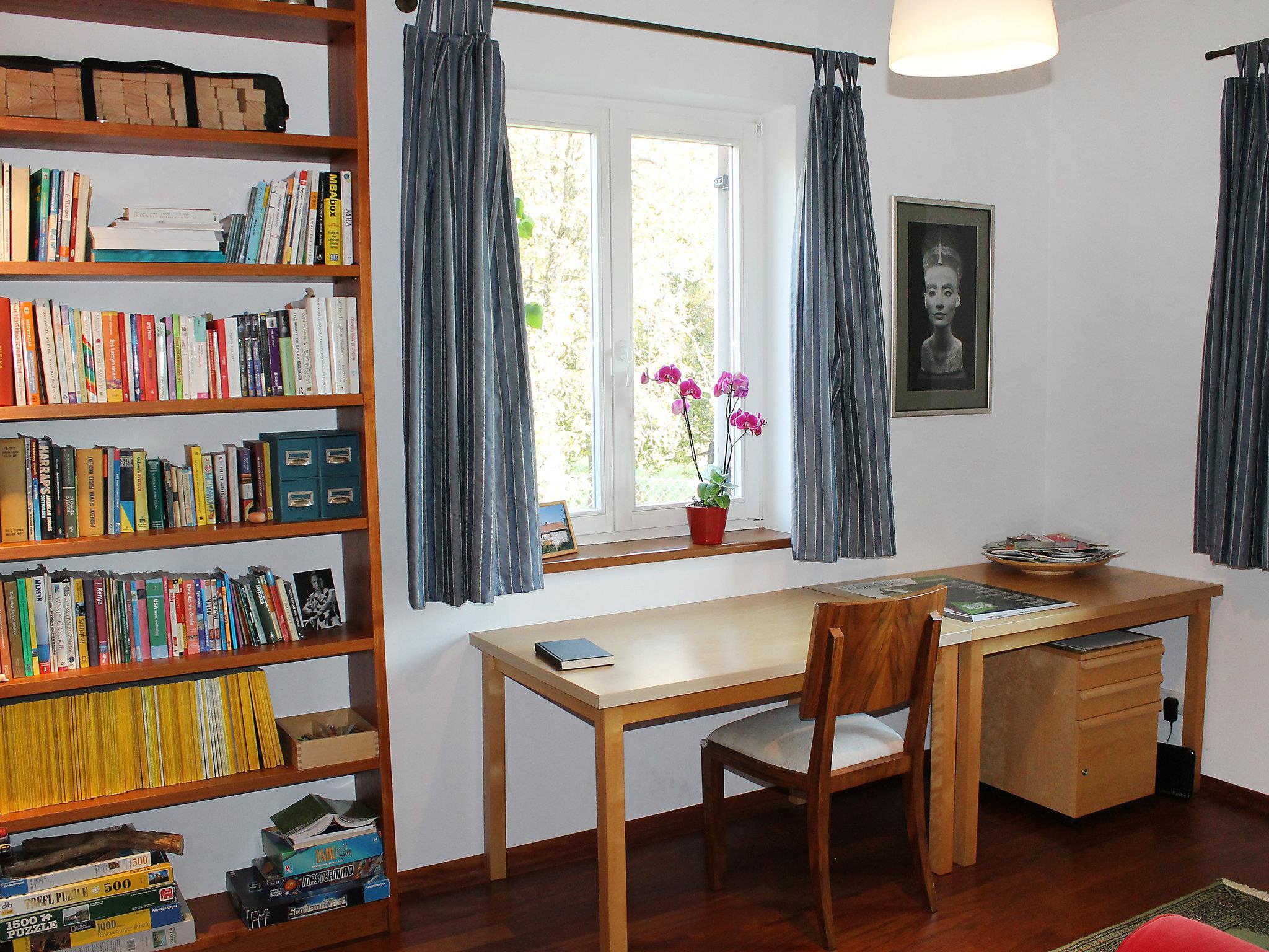 5-Zimmer-Haus 160 m2. Offenes Wohn-/Esszimmer 30 m2 mit offenem Kamin, Sat-TV, Radio, Stereoanlage und DVD. Ausgang zum Garten, zur Terrasse. Salon 30 m2 mit Bibliothek. Offene Küche 12 m2 (Backofen, Geschirrspüler, 4 Glaskeramikplatten). Dusche/WC. Dachgeschoss: 1 Zimmer 20 m2 mit 1 franz. Bett (160 cm, Länge 200 cm). 1 Zimmer 20 m2 mit 1 Doppeldiwanbett (120 cm, Länge 200 cm). Ausgang zum Balkon. 1 Zimmer mit 2 Betten (90 cm, Länge 200 cm). Bad/WC mit Eckbadewanne. G-Heizung, Holzheizung, Bodenheizung. Terrasse 40 m2, Terrasse 12 m2. Terrassenmöbel, Liegestühle (3), Abstellkammer. Sicht auf das Tal, die Landschaft und den Fluss. Zur Verfügung: Waschmaschine, Sauna. Internet (WLAN, gratis). Garage (2 Autos). Bitte beachten: geeignet für Familien. Rauchmelder. Zusätzliche Matratze 90x200 und Bettzeug vorhanden. Das Haus verfügt außerdem über ein Arbeitszimmer (12 m2) Bibliothek.
