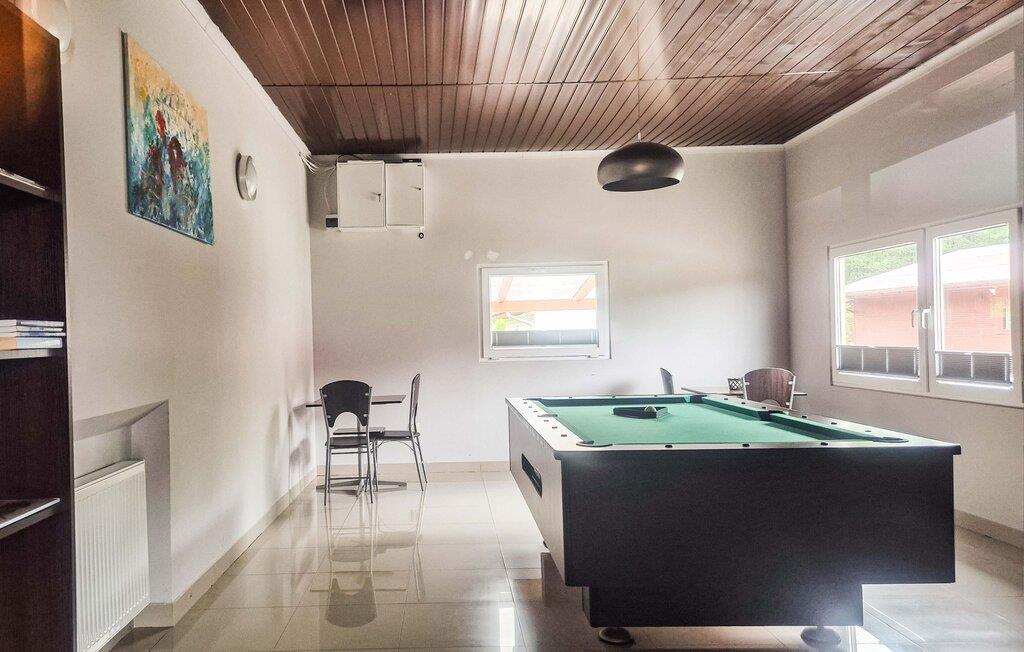 Wenn Sie einen Urlaub nahe dem Meer planen, in dem auch Erlebnisse in der Natur nicht zu kurz kommen, ist dieses gut gelegene Haus die richtige Wahl. Es empfängt Sie nicht weit vom Strand und mehreren Seen und bietet mit wohnlichen Räumen einen schönen Rahmen für Ihre Auszeit mit der Familie. Machen Sie es sich nach einem aktiven Tag im Wohnzimmer bequem, speisen Sie gemeinsam, später können Sie Billard spielen oder auf dem Sofa noch lange plaudern.