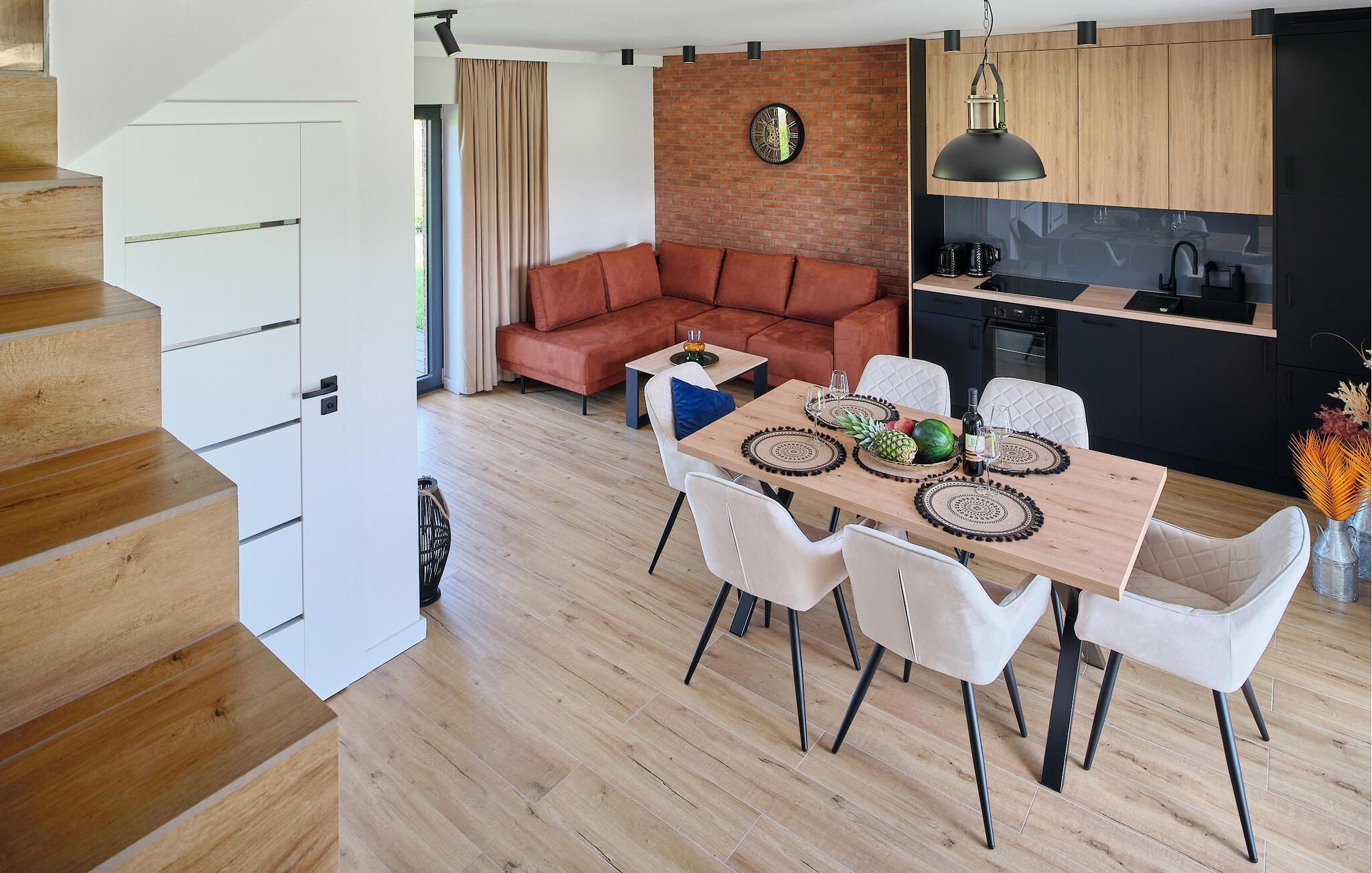 Freuen Sie sich mit Ihren Lieben auf einen entspannten und ruhigen Urlaub in diesem wunderschönen Reihenhaus. Schauen Sie sich um und entdecken hochwertige Möbel und modernes Design, das es Ihnen einfach macht, sich auszuruhen. Zaubern Sie zusammen leckere Gerichte in der Küche oder relaxen Sie in den stilvoll eingerichteten Schlafzimmern. Am Morgen können Sie Ihren Kaffee auf dem Balkon trinken oder mit der Familie auf der Terrasse zum Frühstück zusammenkommen und Ihre Aktivitäten planen.