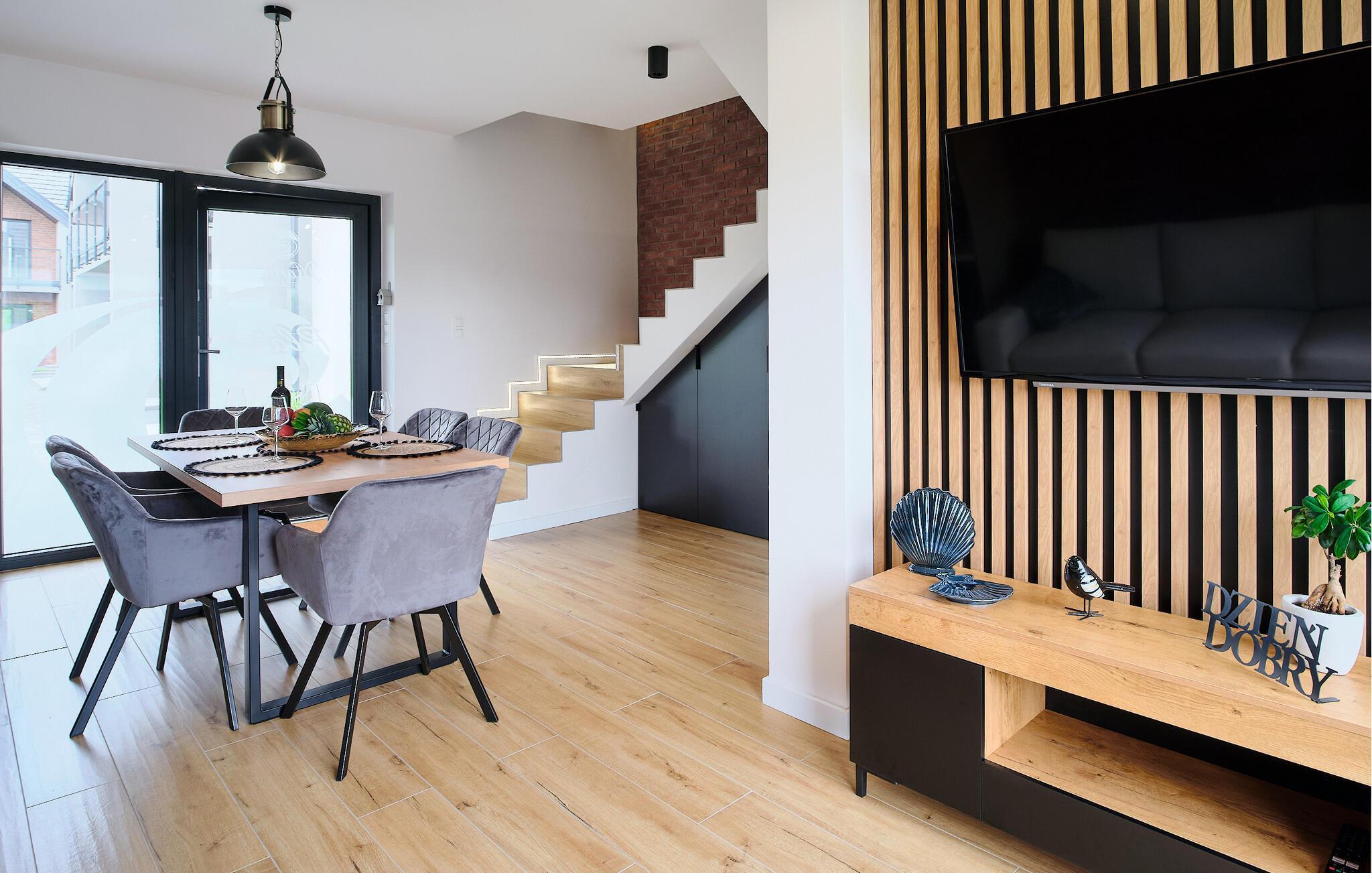 Freuen Sie sich mit Ihren Lieben auf einen entspannten und ruhigen Urlaub in diesem wunderschönen Reihenhaus. Schauen Sie sich um und entdecken hochwertige Möbel und modernes Design, das es Ihnen einfach macht, sich auszuruhen. Zaubern Sie zusammen leckere Gerichte in der Küche oder relaxen Sie in den stilvoll eingerichteten Schlafzimmern. Am Morgen können Sie Ihren Kaffee auf dem Balkon trinken oder mit der Familie auf der Terrasse zum Frühstück zusammenkommen und Ihre Aktivitäten planen.